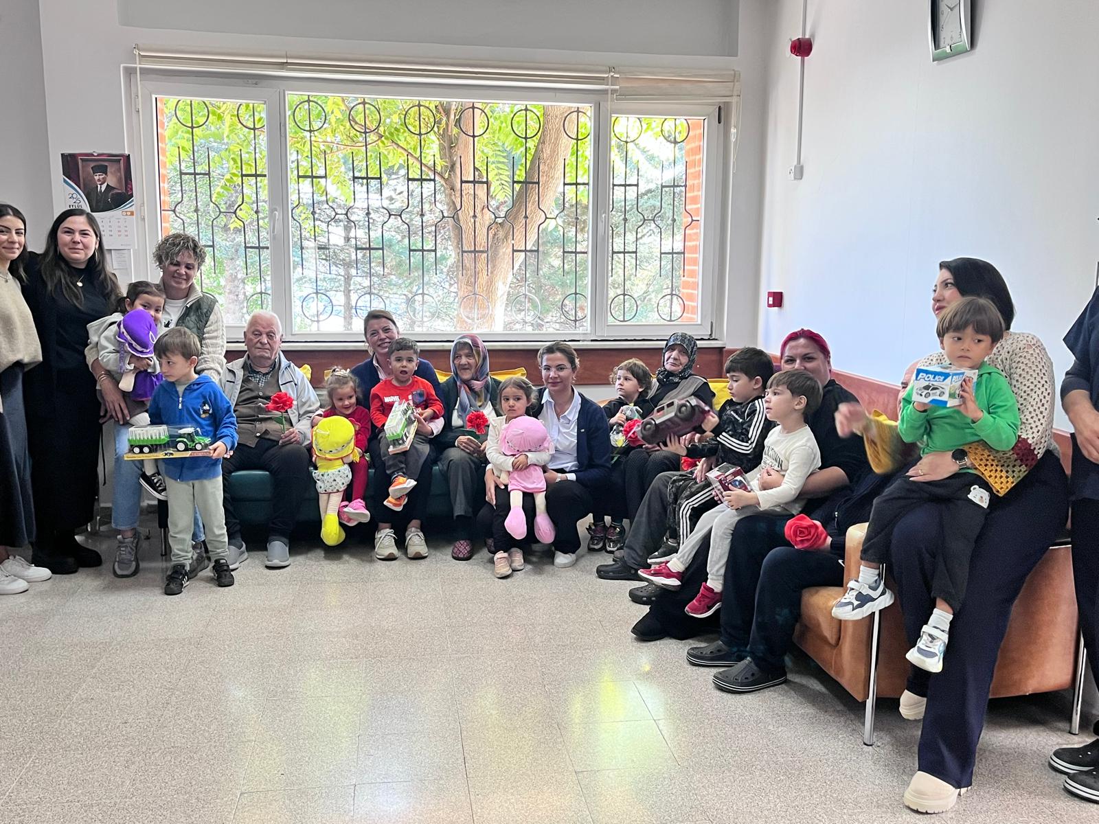 çocukların bu güzel davranışına karşılık oyuncaklar hediye ederek, teşekkür etti.