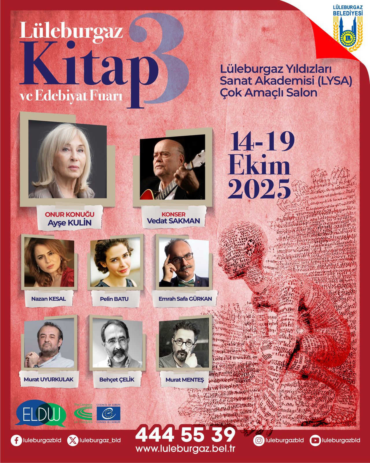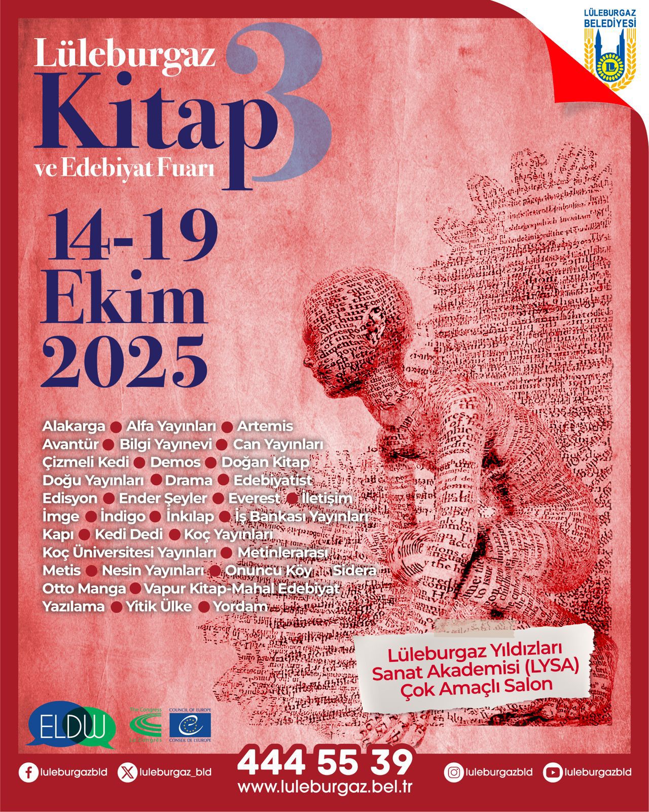 Lüleburgaz Kitap ve Edebiyat Fuarı, 14-19 Ekim tarihleri arasında ziyaretçilere açık olacak. Etkinlik takvimi, yazar buluşmaları ve sahne gösterilerine dair detaylar Lüleburgaz Belediyesi’nin resmi kanallarından duyuruldu.