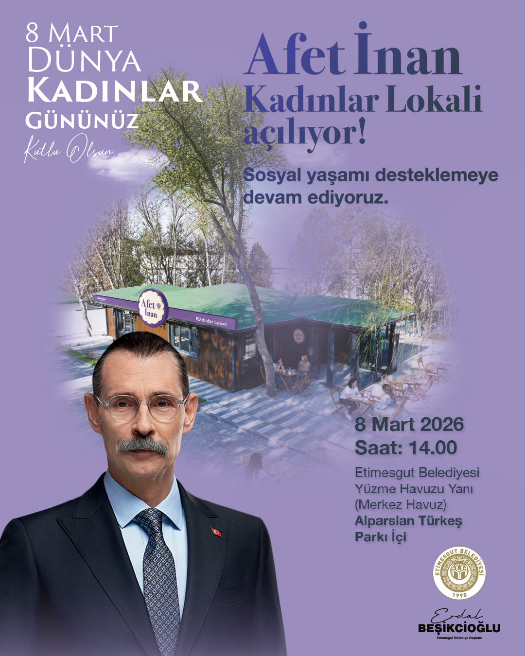 Alparslan Türkeş Parkı içerisinde yapımı tamamlanan Afet İnan Kadınlar Lokali, 8 Mart 2026 Pazar günü saat 14.00’te düzenlenecek törenle kapılarını açacak.