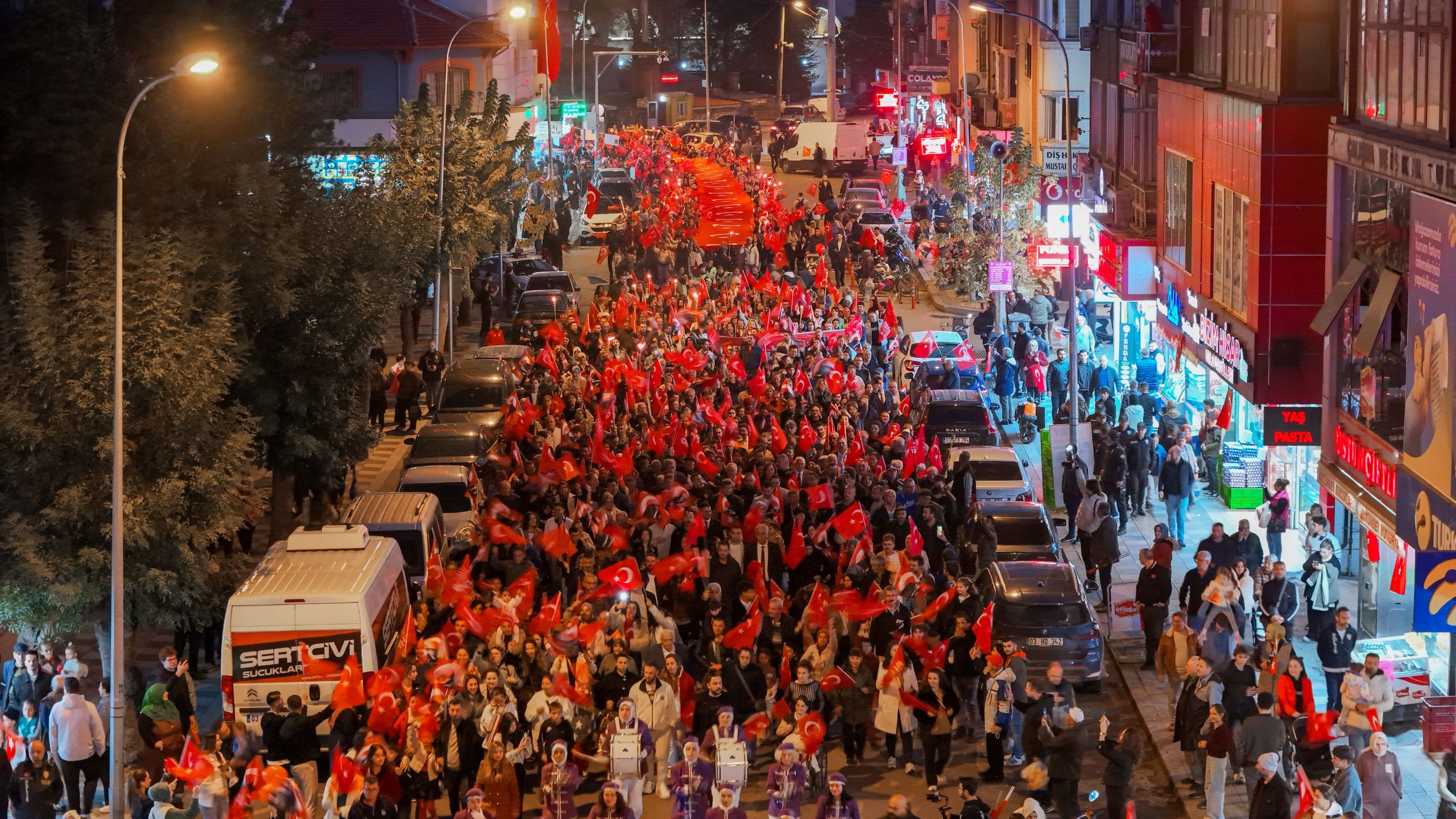 Cumhuriyetin 102. yılına özel olarak düzenlenen Fener Alayı’nda binlerce hemşehri, ellerinde meşaleler ve bayraklarla yürüyüşe katıldı. Kalabalığın coşkulu sesleriyle, Cumhuriyet değerlerine olan bağlılık ve milletin bağımsızlık azmi bir kez daha gözler önüne serildi. Vatandaşlar, Cumhuriyet için özel hazırlanmış marşları hep bir ağızdan söyleyerek yürüyüş boyunca büyük bir birlik ve beraberlik örneği sergiledi.