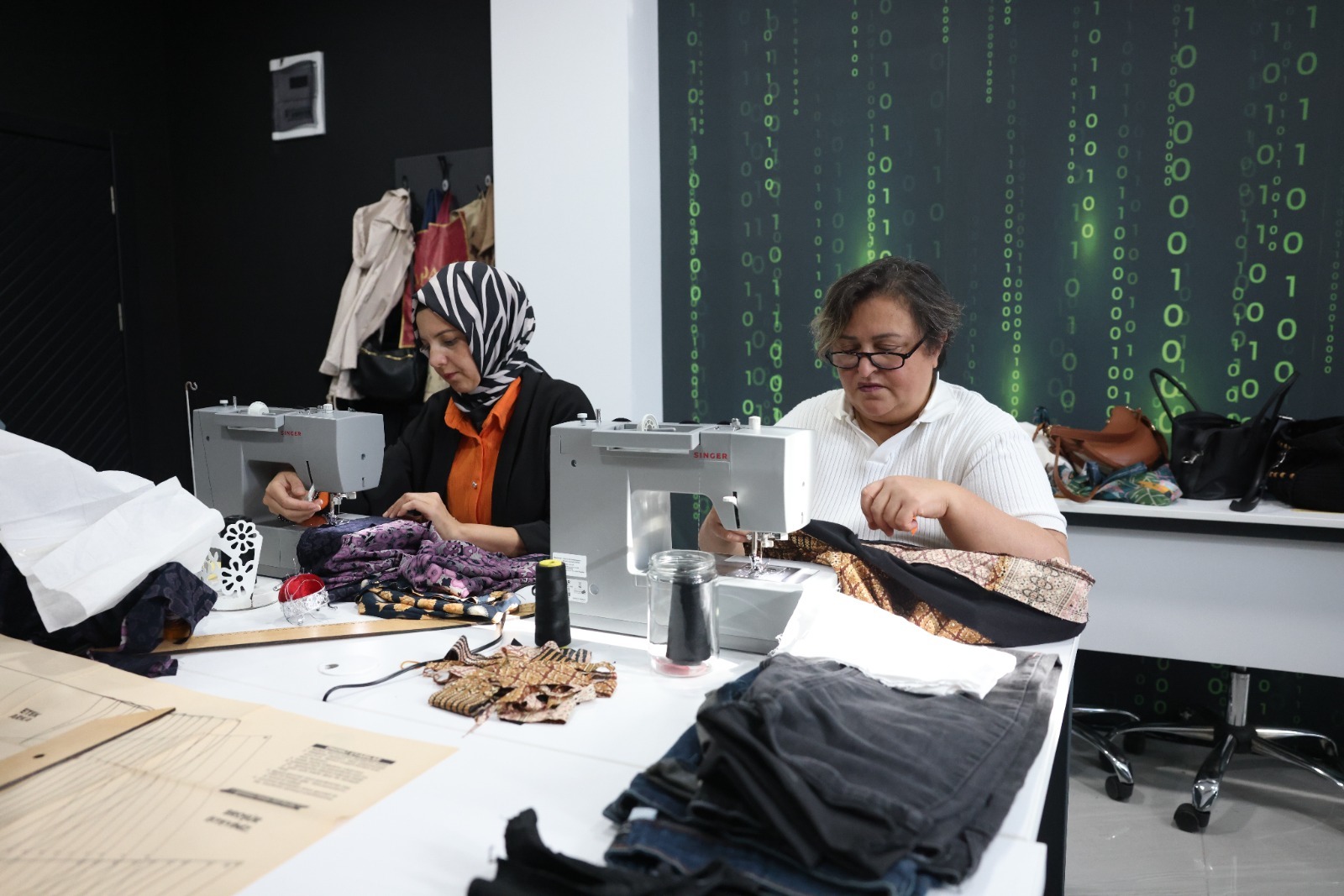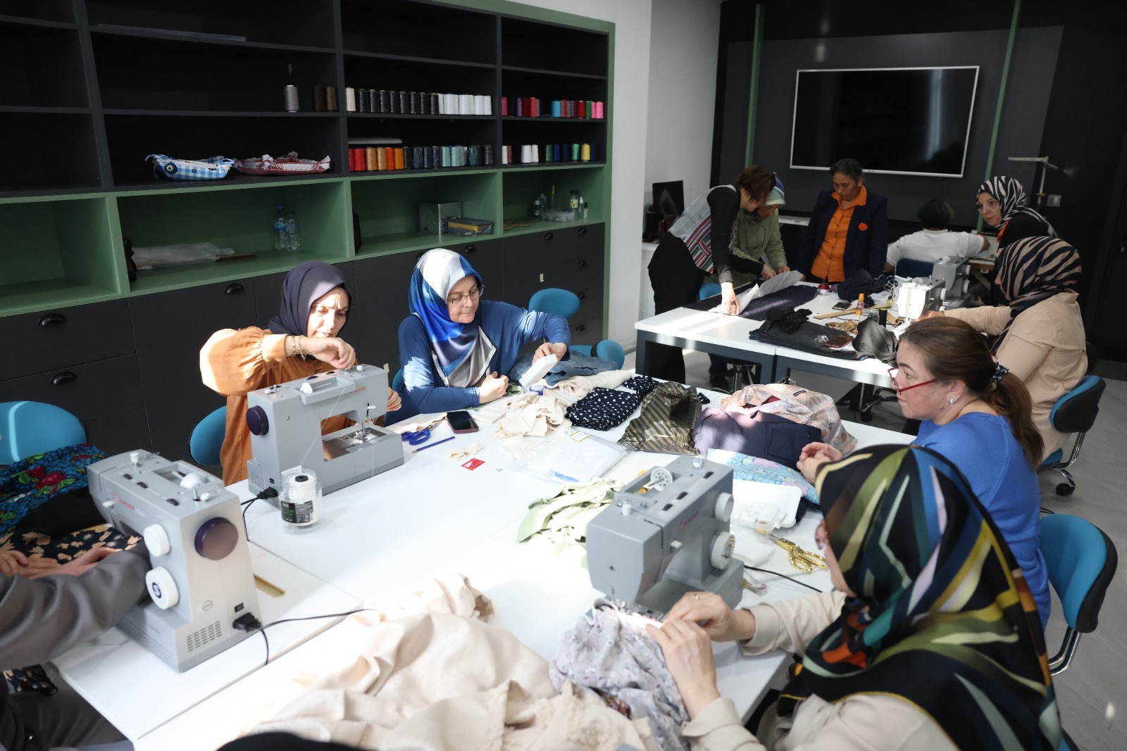 Eğitim programı kapsamında kursiyerler; temel dikiş makinesi, kalıp ve ölçülendirme eğitimlerinin yanı sıra giysi tamirat, günlük kıyafetler ve çanta dikimi gerçekleştiriyor. Ayrıca eğitimlerde eskiyen kıyafetlere yeniden can verilerek geri dönüşüm örneğine imza atılıyor. Kursiyerler eğitim boyunca el becerilerini geliştirmenin ve üretmenin mutluluğunu yaşıyor. Aynı zamanda yeni bir meslek edinme fırsatı bulurken, sosyal bir ortamda dayanışma, paylaşım ve moral duygularını pekiştiriyor.