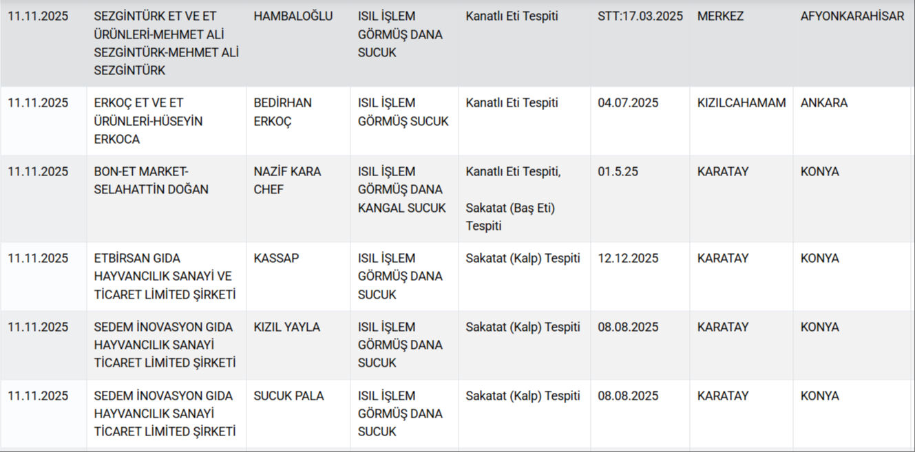 Bakanlığın 11 Kasım tarihinde güncellediği listede yer alan hile türleri arasında en çok tepki çeken ve mide bulandıran tespit, bazı sucuk ürünlerinde at ve eşek eti kullanılması oldu. Piyasa değeri yüksek olan dana eti yerine at ve eşek eti kullanan firmalar, vatandaşın sağlığını ve güvenini tehlikeye attı.