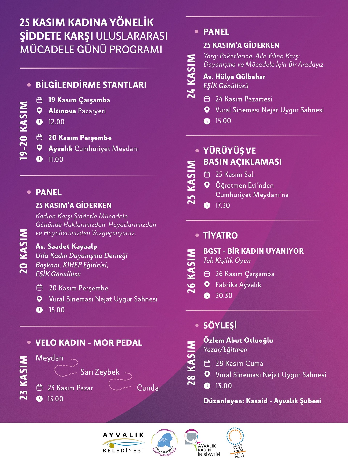 Ayvalık Belediye Başkanı Mesut Ergin, Ayvalık Belediyesi olarak, 25 Kasım Kadına Yönelik