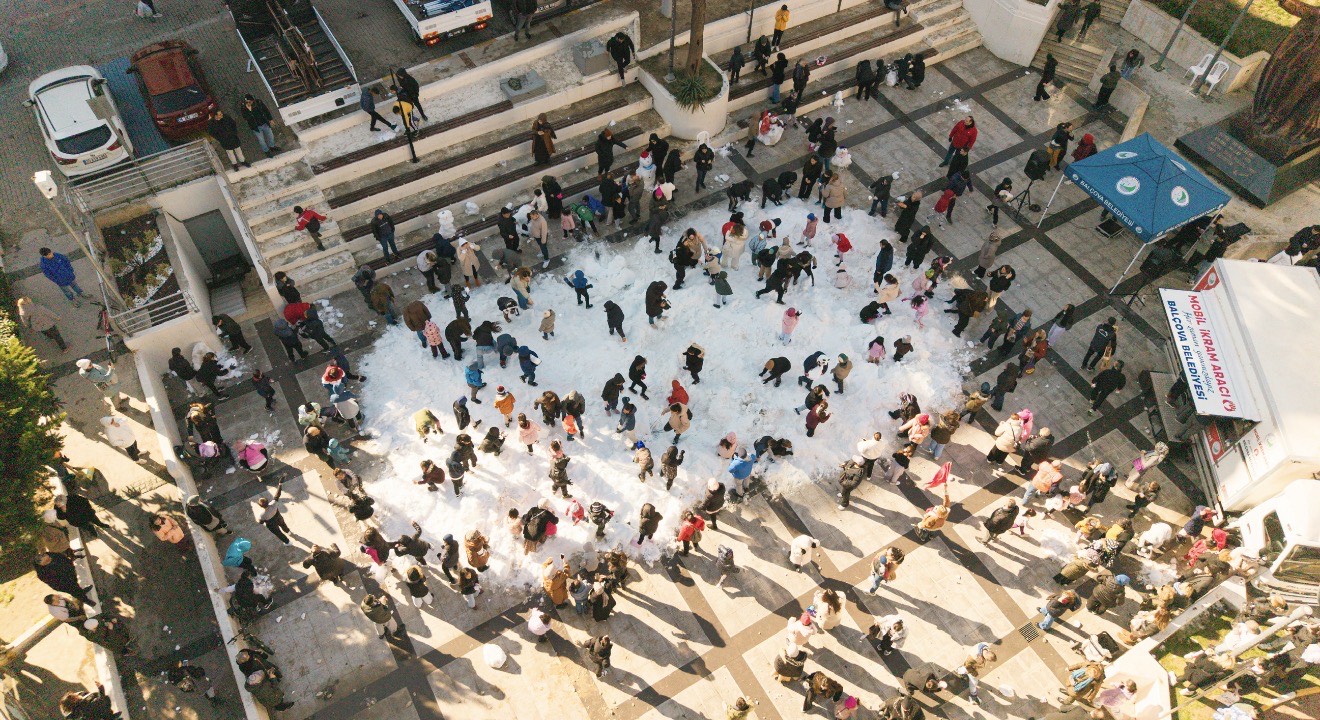 Balçova Belediyesi, İzmir’de nadir yaşanan kar sevincini çocuklarla buluşturmak amacıyla belediye binası önünde Kar Şenliği düzenledi. Etkinlik alanı kısa sürede dolarken, aileler ve çocuklar kar topu oynayarak doyasıya eğlendi.