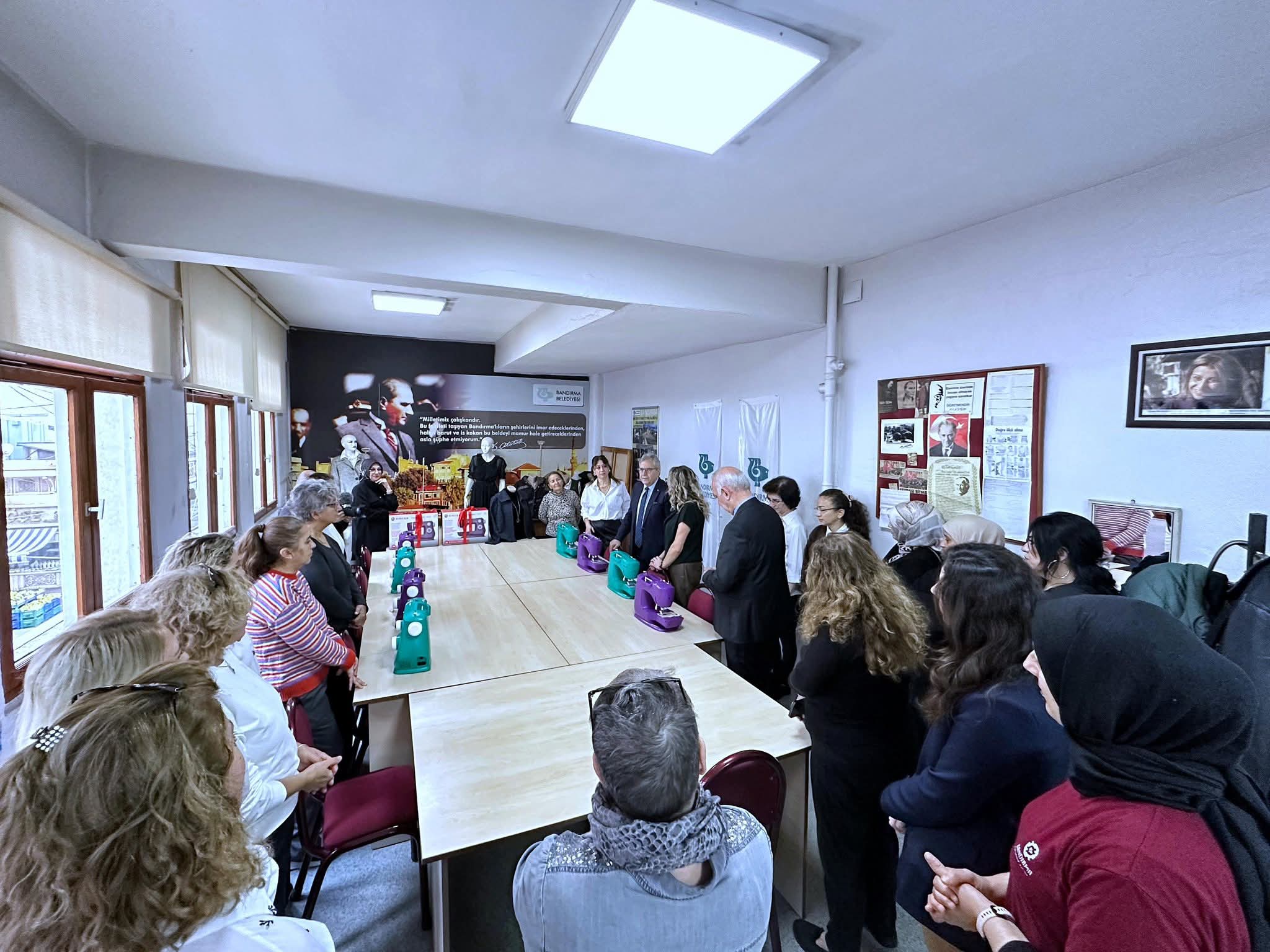 Başkan Mirza, kursiyerlerin üretim süreçlerini daha verimli sürdürebilmeleri amacıyla merkeze 10 adet yeni dikiş makinesi kazandırıldığını açıkladı.