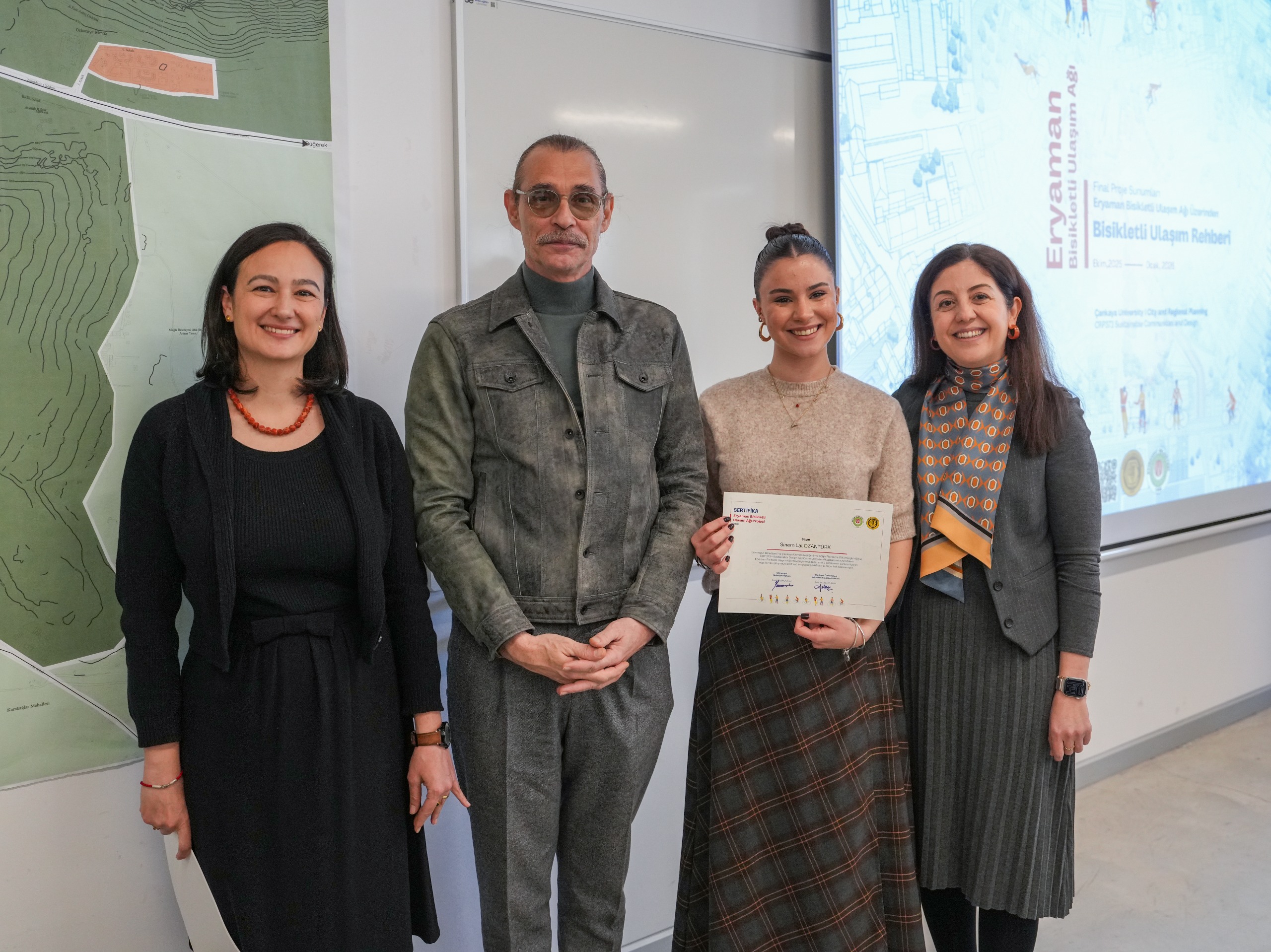 Etimesgut Belediye Başkanı Erdal Beşikcioğlu’nun katılımıyla, Çankaya Üniversitesi Şehir ve Bölge Planlama ile İç Mimarlık bölümü öğrencileri tarafından hazırlanan “Eryaman Bisikletli Ulaşım Ağı”na yönelik final proje sunumları gerçekleştirildi. Akademik bilgi ile kent yaşamını buluşturan sunumlarda, Eryaman özelinde bisikletli ulaşımın geliştirilmesine yönelik öğrencilerin kapsamlı projeleri ve önerileri ele alındı.