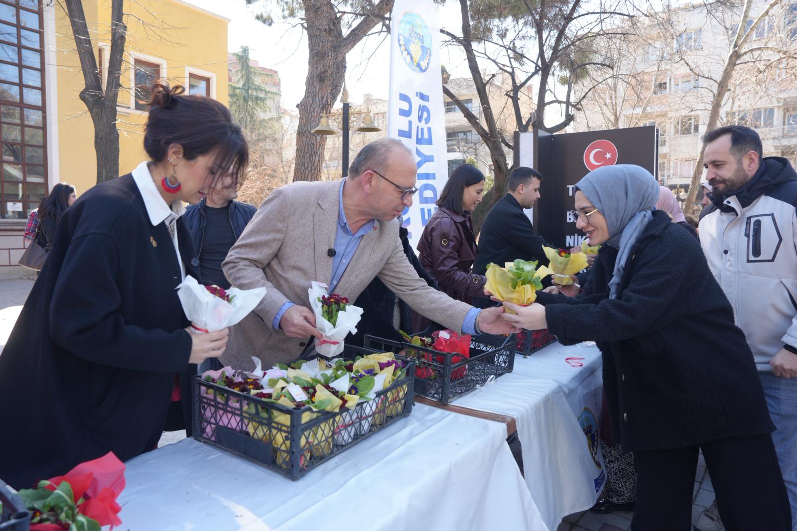 Turgutlu Belediye Başkanı Çetin Akın’ın geleneksel hale getirdiği 8 Mart Dünya Emekçi Kadınlar Günü kutlaması bu yılda da devam etti. Turgutlu Belediyesi Park ve Bahçeler Müdürlüğü Şantiyesinde yetiştirilen ve 8 Mart’a özel olarak süslenen çiçekler günün anlam ve önemine dikkat çekmek amacıyla Turgutlulu kadınlara dağıtıldı. Eski Belediye Binası önünde gerçekleştirilen dağıtımda 8 Mart Dünya Emekçi Kadınlar Günü’nü kutlayan Başkan Akın, kadınların sosyal yaşamdan spora, sanattan siyasete kadar her alanda desteklenmesinin önemine değindi.
