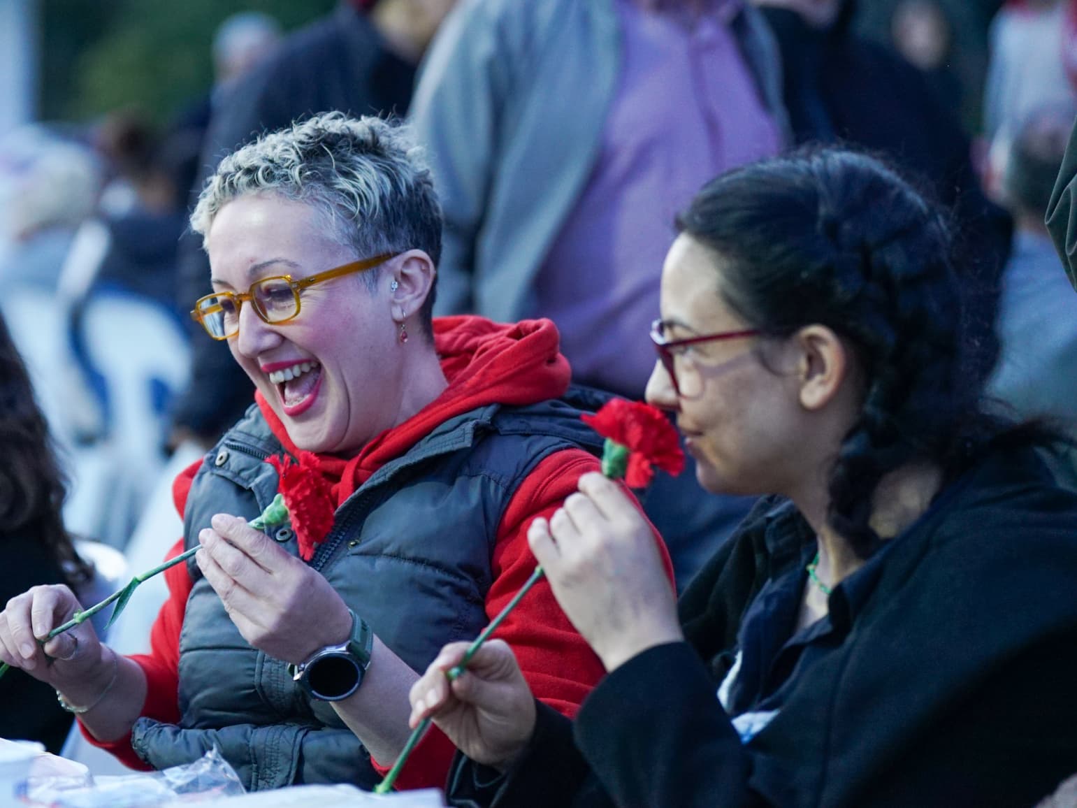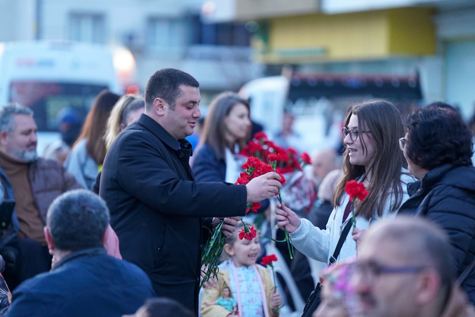 kadınlara karanfil dağıttı. Kadınların gününü kutlayan Demir çifti, vatandaşlardan da büyük