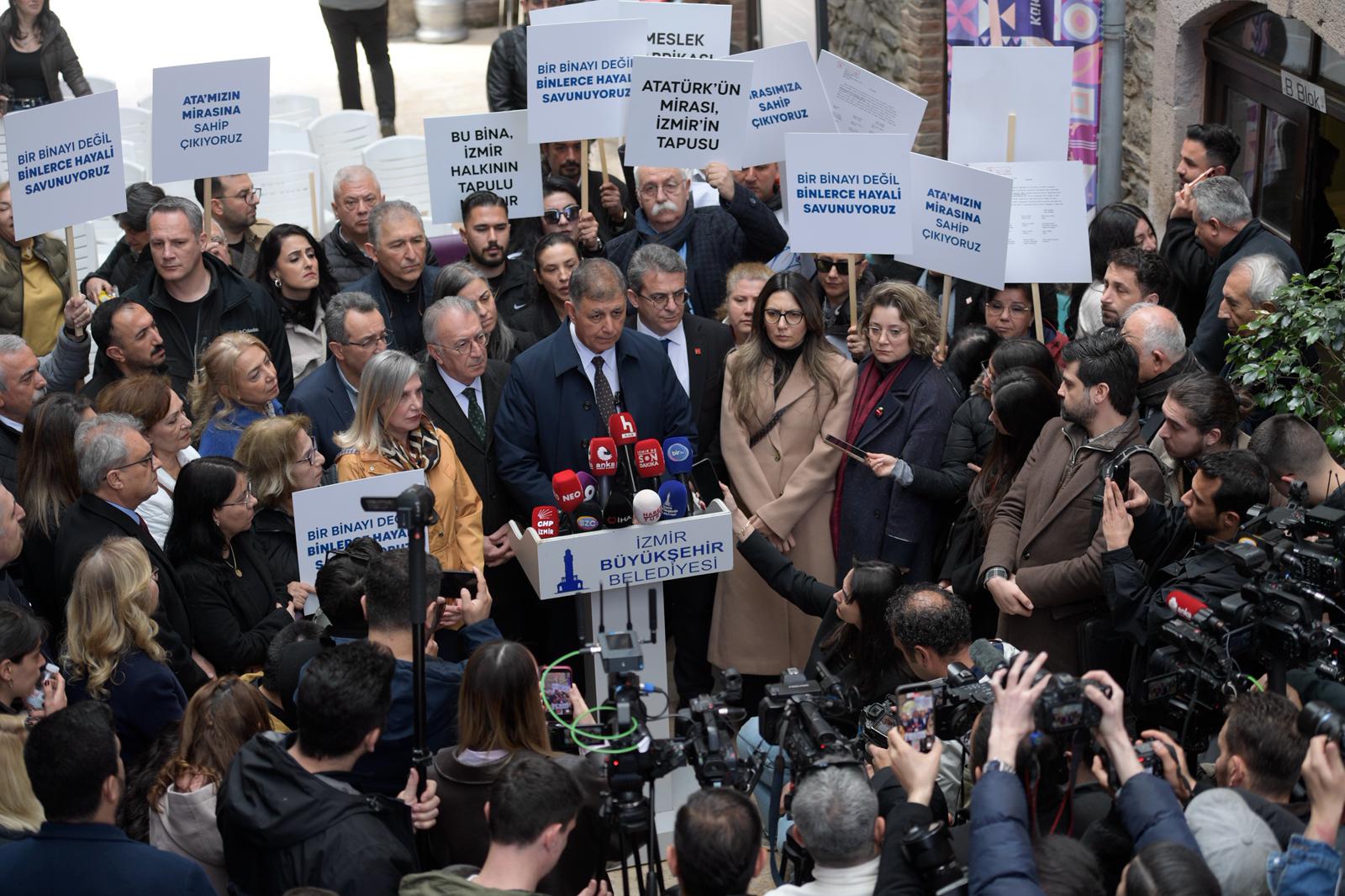 İzmirlilerin kendisini ve meclis üyelerini beş yıllığına İzmir’in hakkı ve hukukuna sahip çıkmaları ve İzmir’e hizmet etmeleri için seçtiğini söyleyen Başkan Tugay, “Böyle bir görevimiz varken ‘buyurun bu binaları alın’ diyemeyiz. Vicdanımız da aklımız da devlete olan inancımız da hukuka olan inancımız da bunu kesinlikle doğru bulmuyor. Uyarılarımıza rağmen herhangi bir şekilde geri adım atılmadığından dolayı bugün fiziken burada buna itiraz ettiğimizi göstermek zorunda kaldık. İzmir Büyükşehir Belediyesi ve diğer belediyeler hiçbir hizmetini durdurmuş değil. Normal düzenimizde devam ediyoruz ama ben İzmir Büyükşehir Belediyesi’nin en üst düzeyde yöneticisi olarak İzmir halkını temsilen kendimi burada bu yanlışa ‘dur’ demek zorunda hissediyorum. O yüzden geldim, hiç kimseyi özel olarak buraya çağırmadım. Tamamen kendi duyarlılıklarıyla burada bulunuyorlar. Yanımızda yer alıyorlar, hepsine teşekkür ediyorum” dedi.