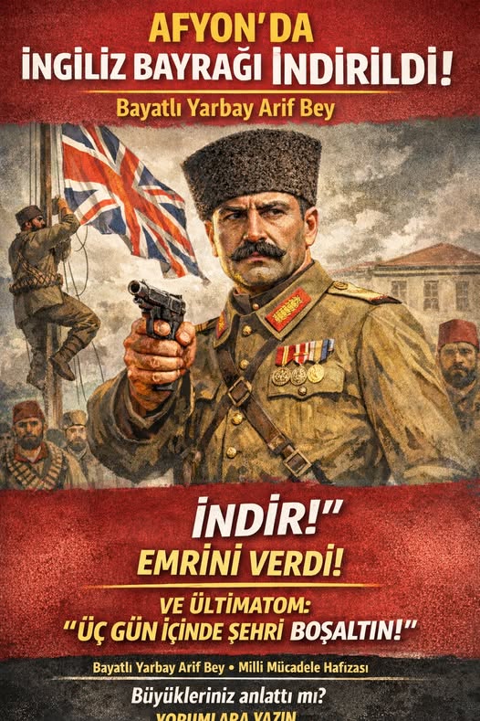 Arif Bey bir an durdu. Sanki rüzgâr bile o bayrağı taşırken utanıyordu. Bayat’tan çıkıp cephe cephe dolaşmış, Bozkır’da isyan bastırmış, memleketin her köşesinde “Bu vatan sahipsiz değil” diye haykırmış bir adamın gözü, o renkli bez parçasına takılıp kaldı. Dudakları ince bir çizgi oldu. O an, Afyon’un üstüne çöken sessizliğin sebebini daha iyi anladı: Bu sadece bir işgal değildi; bu, **onurun direğe asılmasıydı.**