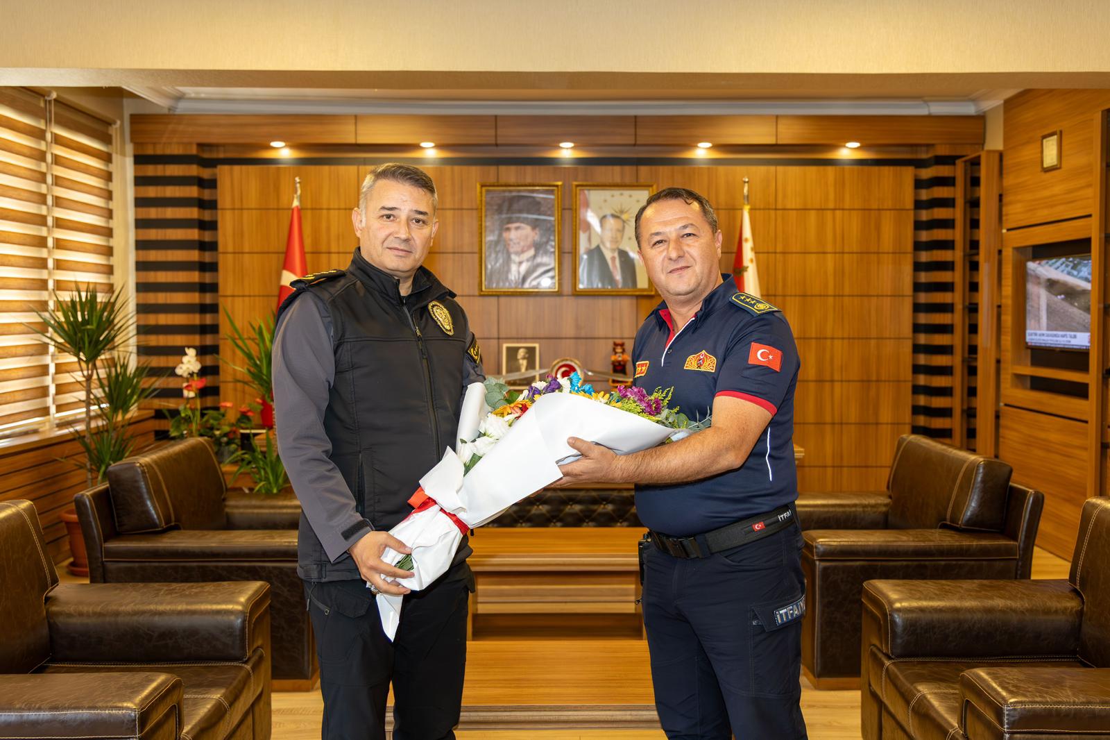 İtfaiye Müdürü Zeyhan ve beraberindeki görevlilerin İtfaiye Haftası’nı kutlayan Vali Sözer, çalışmalarında kolaylıklar diledi. Emniyet Müdürü Gökalp Şener de gerçekleştirilen ziyaretten duyduğu memnuniyeti belirterek, konuklarına teşekkür etti.