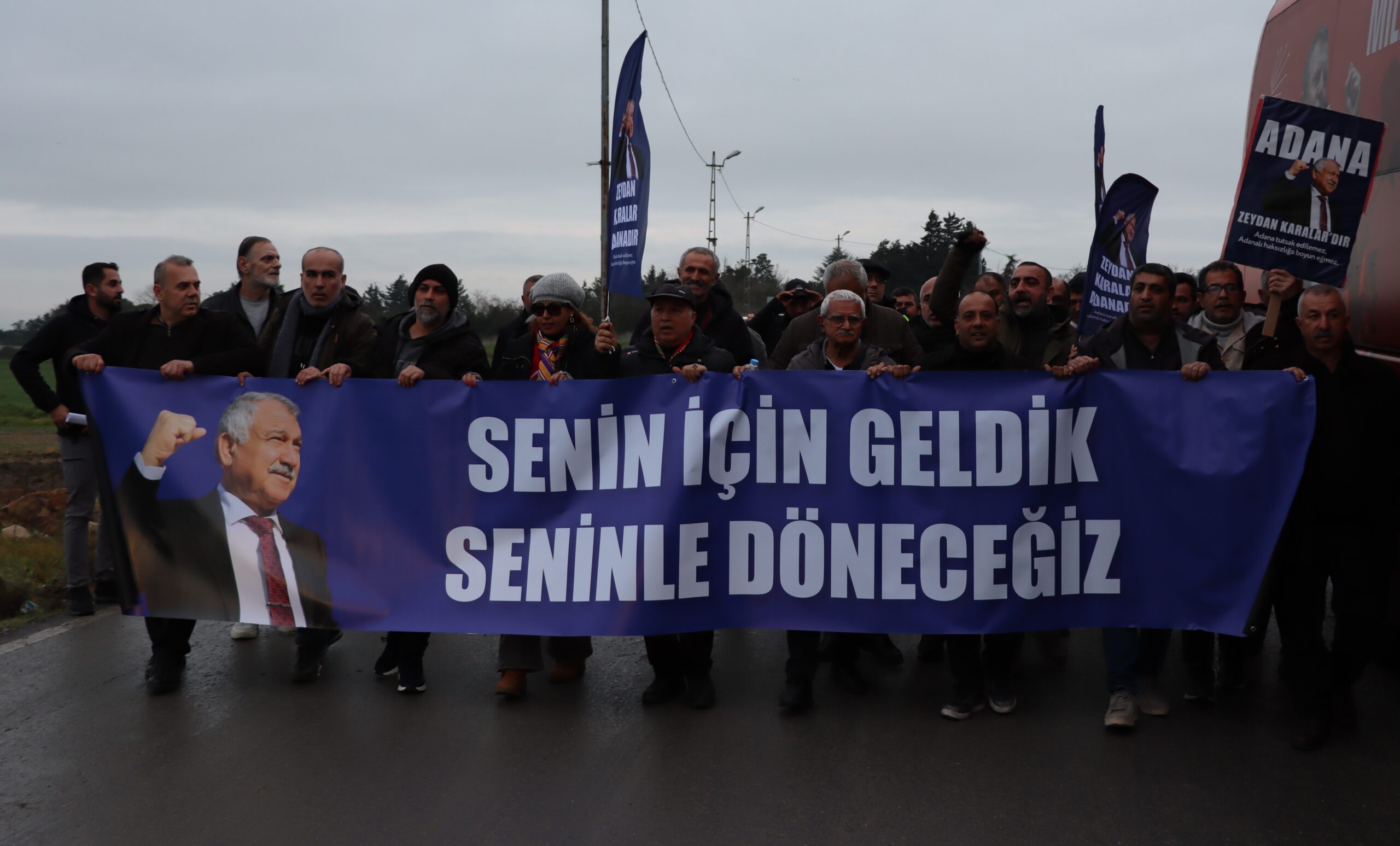 Başkan Zeydan Karalar’ın mahkemede ifade vereceği saatlerde binlerce Adanalı, Başkanlarına destek vermek amacıyla Silivri’ye ulaşıyor. Adana’dan çoğunluğu otobüslerle hareket eden Adanalılar, bugün sabah saatlerinde Silivri Askeri Lojmanları yanındaki arazide toplanarak, destek ve dayanışma için güç birliği yaptı. “Senin İçin Geldik, Seninle Döneceğiz” yazılı pankart taşıyan Adanalılar; “Hak Hukuk Adalet, Her Yer Silivri Her Yer Direniş, Adana’nın Gururu Zeydan Karalar” sloganları atarak, Zeydan Karalar’a özgürlük talebinde bulundu.