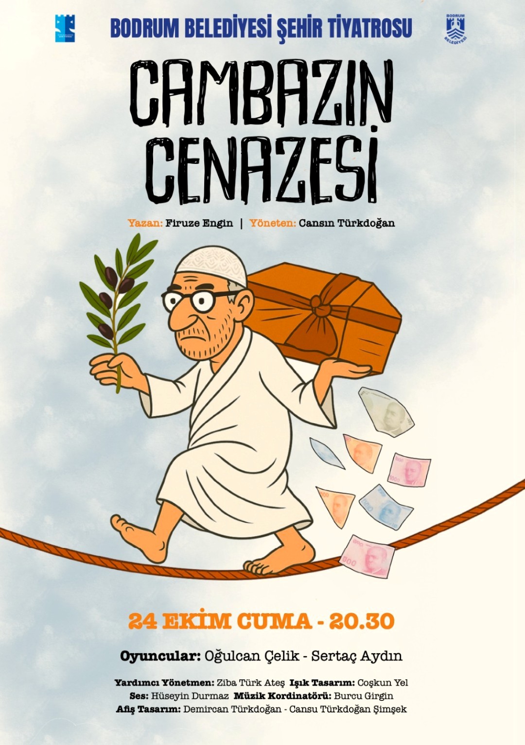 Sezonun ikinci oyunu olan “Cambazın Cenazesi”, 24 Ekim Cuma akşamı prömiyer yapacak. Firuze Engin’in yazdığı, Cansın Türkdoğan’ın yönettiği ve Oğulcan Çelik ile Sertaç Aydın’ın rol aldığı bu tek perdelik güldürü, geleneksel tiyatrodan ilham alınarak günümüze uygun olacak şekilde sahnelenecek. Güncel mesajlar, taşlamalar ve eleştiriler ışığında bu eğlenceli yapım, izleyicilere keyifli anlar yaşatacak.