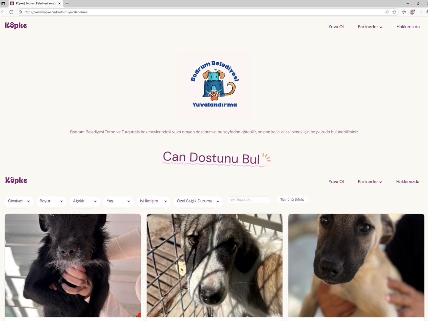 KÖPKE’nin “Can Dostunu Bul” web sayfası üzerinden vatandaşlar; cinsiyet, boyut, yaş, iletişim derecesi ve özel sağlık durumu gibi filtreleri kullanarak kendilerine en uygun dostlarını kolayca bulabiliyor.