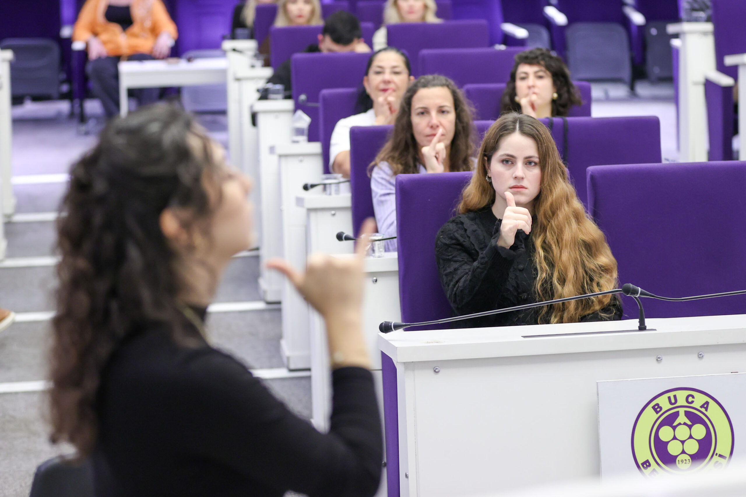 Vatandaş odaklı hizmet anlayışını bir adım öteye taşıyan Buca Belediyesi, personeline yönelik “İşaret Dili Eğitimi” düzenledi. Belediye hizmetlerinden tüm vatandaşların eşit şekilde faydalanmasını sağlamak amacıyla gerçekleştirilen eğitimde katılımcılar, işaret dilinin temel prensiplerinin yanı sıra dile has el hareketleri, mimikler ve vücut hareketlerini içeren unsurları öğreniyorlar.