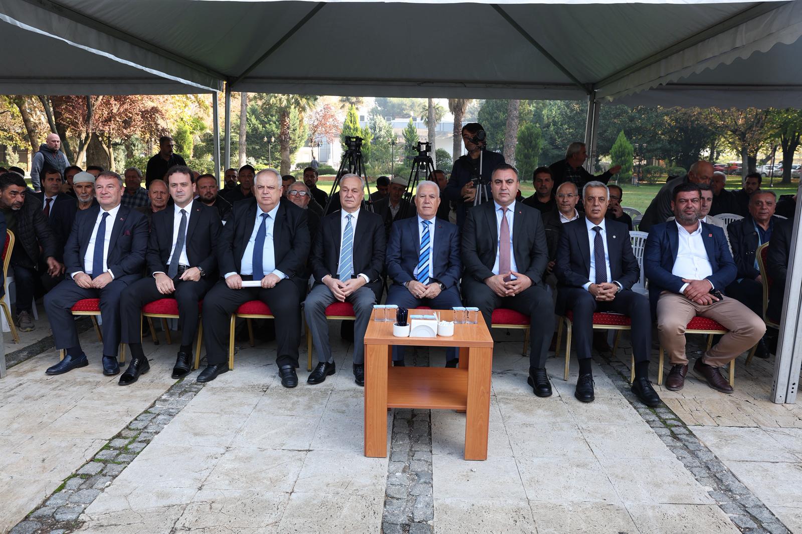 Konuşmaların ardından Büyükşehir Belediye Başkanı Mustafa Bozbey ve Mustafakemalpaşa Belediye Başkanı Şükrü Erdem tarafından tohumluk yüzde 100 hibeli buğdaylar çiftçilere teslim edildi. Programa Büyükşehir Belediye Başkanı Mustafa Bozbey ve Mustafakemalpaşa Belediye Başkanı Şükrü Erdem’in yani sıra CHP İlçe Başkanı Gökhan Demir, Tarım Peyzaj AŞ Yönetim Kurulu Başkanı Mehmet Aydın Saldız, Tarım Peyzaj AŞ Genel Müdürü Sedat Akar, Büyükşehir Belediyesi ve iştiraklerin yöneticileri, ziraat odalarının başkan ve yöneticileri ve üreticiler katıldı.