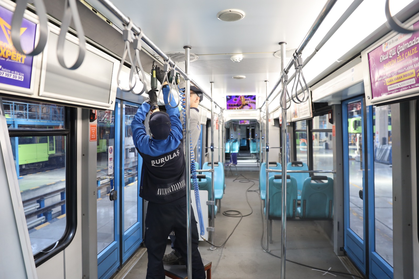 Bursa’nın daha yaşanabilir ve ulaşılabilir bir kent olması amacıyla çalışmalarını sürdüren Büyükşehir Belediyesi, iştirakleri aracılığıyla Türkiye’ye örnek olmaya da devam ediyor. Toplu taşıma hizmetlerini daha verimli ve sürdürülebilir hale getirmek için bakım ve onarım çalışmalarını kendi bünyesinde yürüten Büyükşehir Belediyesi’nin ulaşım şirketi BURULAŞ, tasarruf tedbirleri kapsamında araçlardaki dönüşümü de sağlıyor. Bu doğrultuda BURULAŞ ekipleri, BursaRay araçlarında kullanılan kısa tip florasanların üretimden kalkması ve araç iklimlendirme sistemlerinin verimsiz çalışması nedeniyle vagon içlerinde LED dönüşümünü gerçekleştirdi.