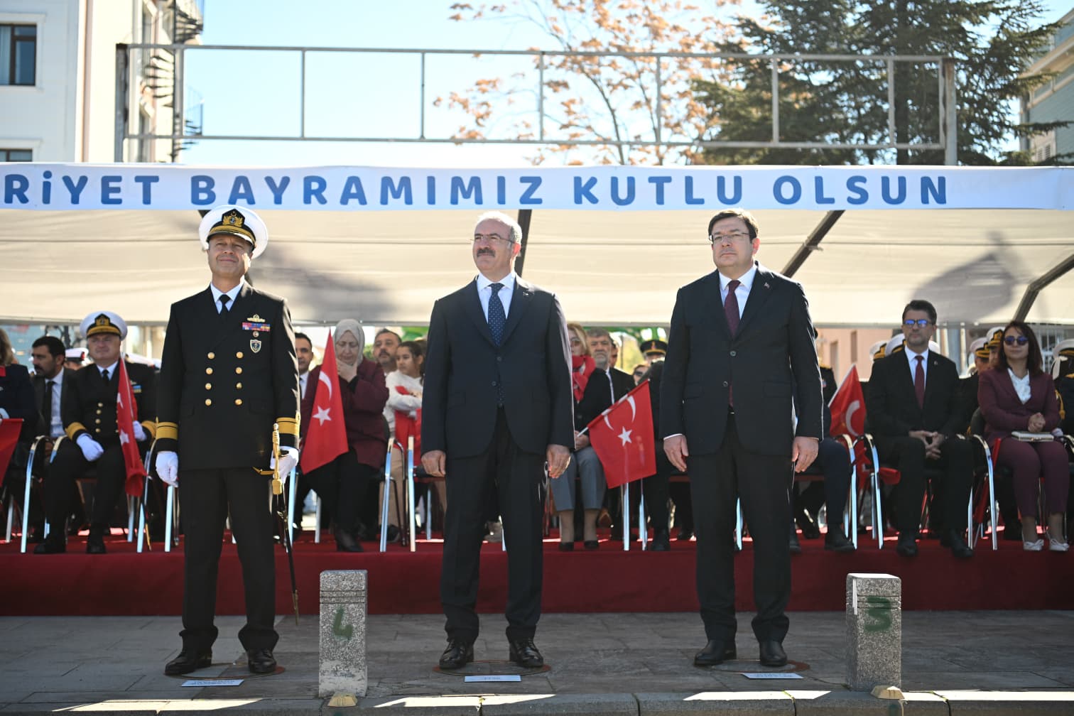 Vali Doç. Dr. Ömer Toraman, Boğaz ve Garnizon Komutanı Tuğamiral Mustafa Biçen, Belediye Başkanı Muharrem Erkek, CHP Çanakkale Milletvekilleri İsmet Güneşhan ve Özgür Ceylan başta olmak üzere kent protokolü, kurum ve kuruluş temsilcileri, sivil toplum kuruluşları ve oda temsilcileri ile çok sayıda hemşehrimizin katıldığı tören, saygı duruşu ve İstiklal Marşı’nın okunması ile başladı. Günün anlam ve önemine ilişkin konuşmaların ardından İl Jandarma Komutanlığına bağlı Jandarma Asayiş Komando Bölük Komutanlığı gösterisi, şiirlerin okunması, halk oyunları gösterisi ve geçit töreniyle program sona erdi.