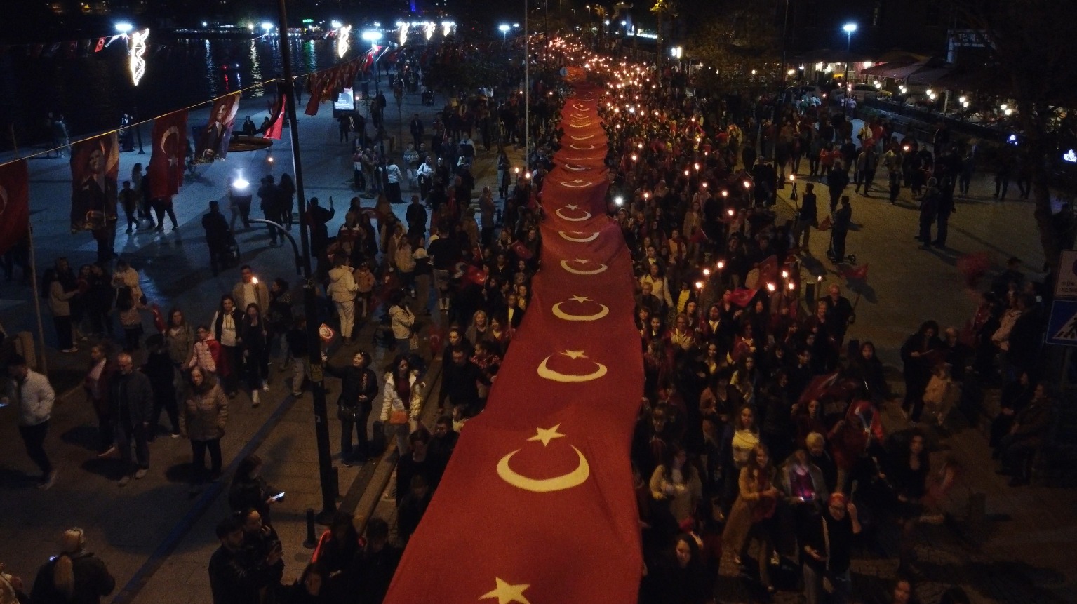 Akşam saatlerinde gerçekleştirilen Fener Alayı ise bayram coşkusunu zirveye taşıdı. Yürüyüşe, Vali Doç. Dr. Ömer Toraman, Boğaz ve Garnizon Komutanı Tuğamiral Mustafa Biçen, Belediye Başkanı Muharrem Erkek başta olmak üzere kent protokolü, sivil toplum kuruluşları temsilcileri ve çok sayıda hemşehrimiz katıldı. Boğaz ve Garnizon Komutanlığı Bandosu eşliğinde Cumhuriyet Meydanı’nda bir araya gelen binlerce hemşehri, ellerinde meşaleler, bayraklar ve pankartlar ile birlikte büyük bir coşkuyla marşlar söyleyerek fener alayı yürüyüşünü gerçekleştirdi.