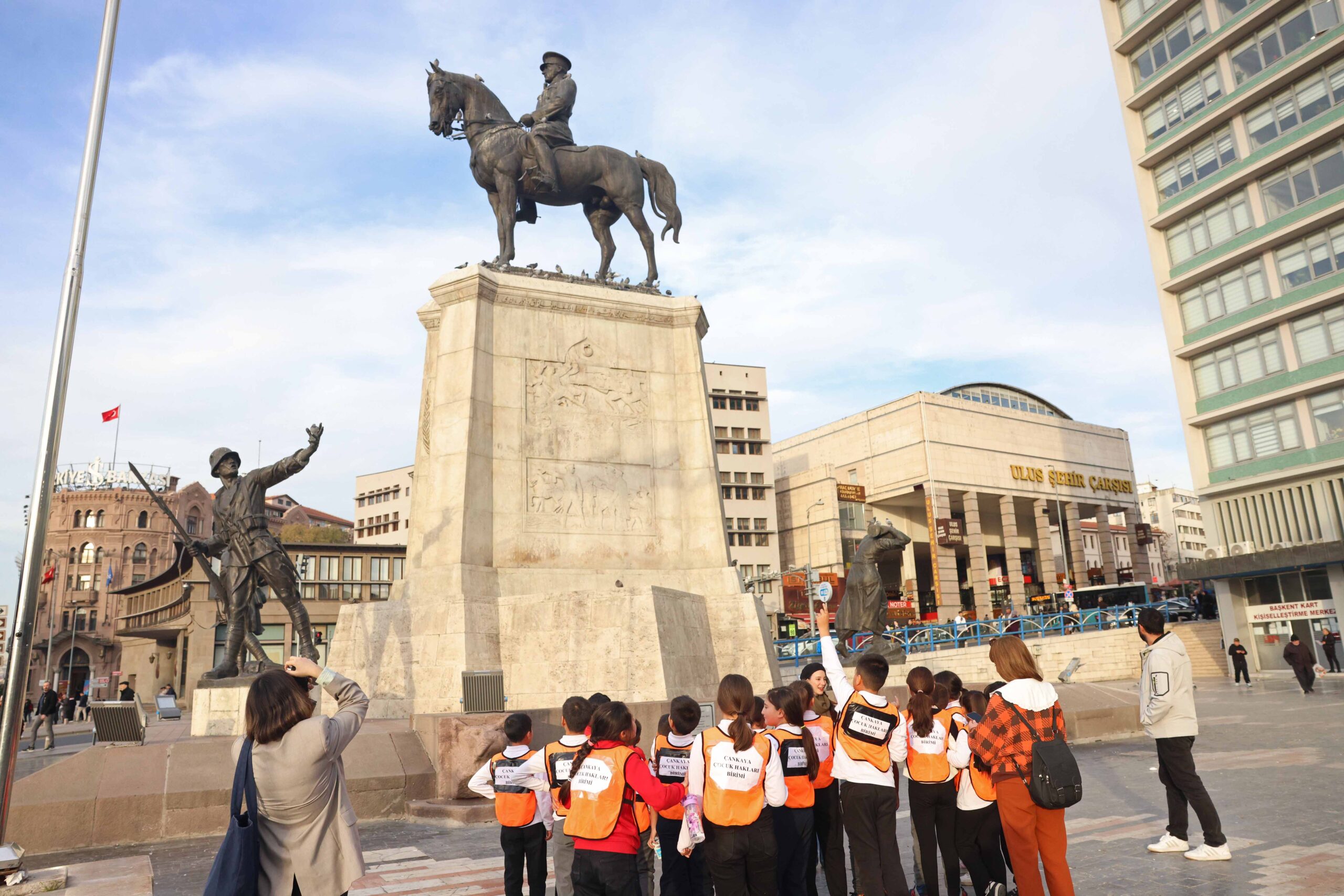 Çankaya Belediyesi, 20 Kasım Çocuk Hakları Günü’nü bir hafta sürecek etkinliklerle dolu dolu kutluyor. Çankaya Belediyesi Kreş Müdürlüğü Çocuk Hakları Birimi öncülüğünde gerçekleşen etkinlikte dezavantajlı bölgelerden gelen çocuklar, “Kentim ve Haklarım” gezisinde buluştu. Metin Oktay ve Seyran mahallelerinden katılan öğrenciler, Ulus bölgesinde bulunan tarihi yerleri ziyaret etti. PTT Pul Müzesi, Suluhan Çarşısı, Hacı Bayram Veli, Sümerbank, Roma Kalıntıları, Atatürk Heykeli, I. Meclis ve Ankara Palas’ı uzman rehberleri eşliğinde gezen çocuklar, hem eğlendi hem de kent tarihiyle ilgili eğitici bir deneyim yaşamış oldu.