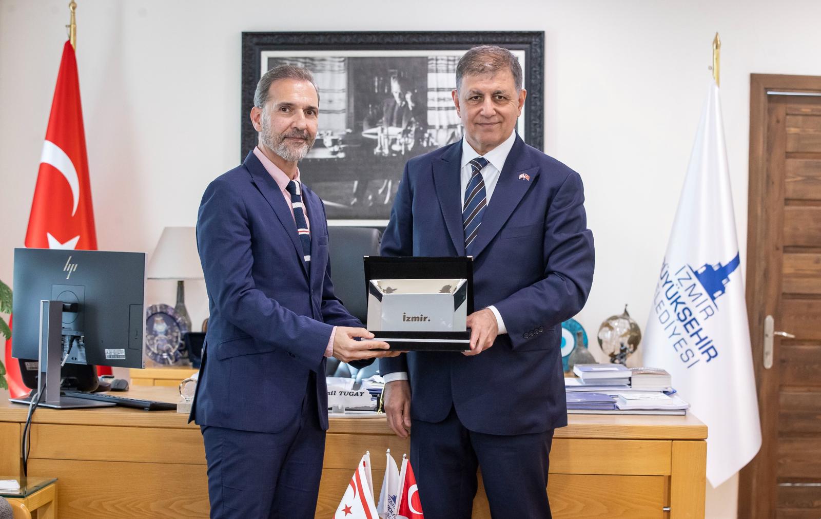 İzmir’de görevine yeni başlayan Kuzey Kıbrıs Türk Cumhuriyet (KKTC) Başkonsolosu Mustafa Davulcu, İzmir Büyükşehir Belediye Başkanı Dr. Cemil Tugay’ı ziyaret etti. Ziyarette İzmir Büyükşehir Belediyesi Genel Sekreter Yardımcısı Övünç Özgen, İzmir Büyükşehir Belediyesi Dış İlişkiler Dairesi Başkanı Selin Sayın Kapancı, İzmir Büyükşehir Belediyesi bürokratları da yer aldı.
