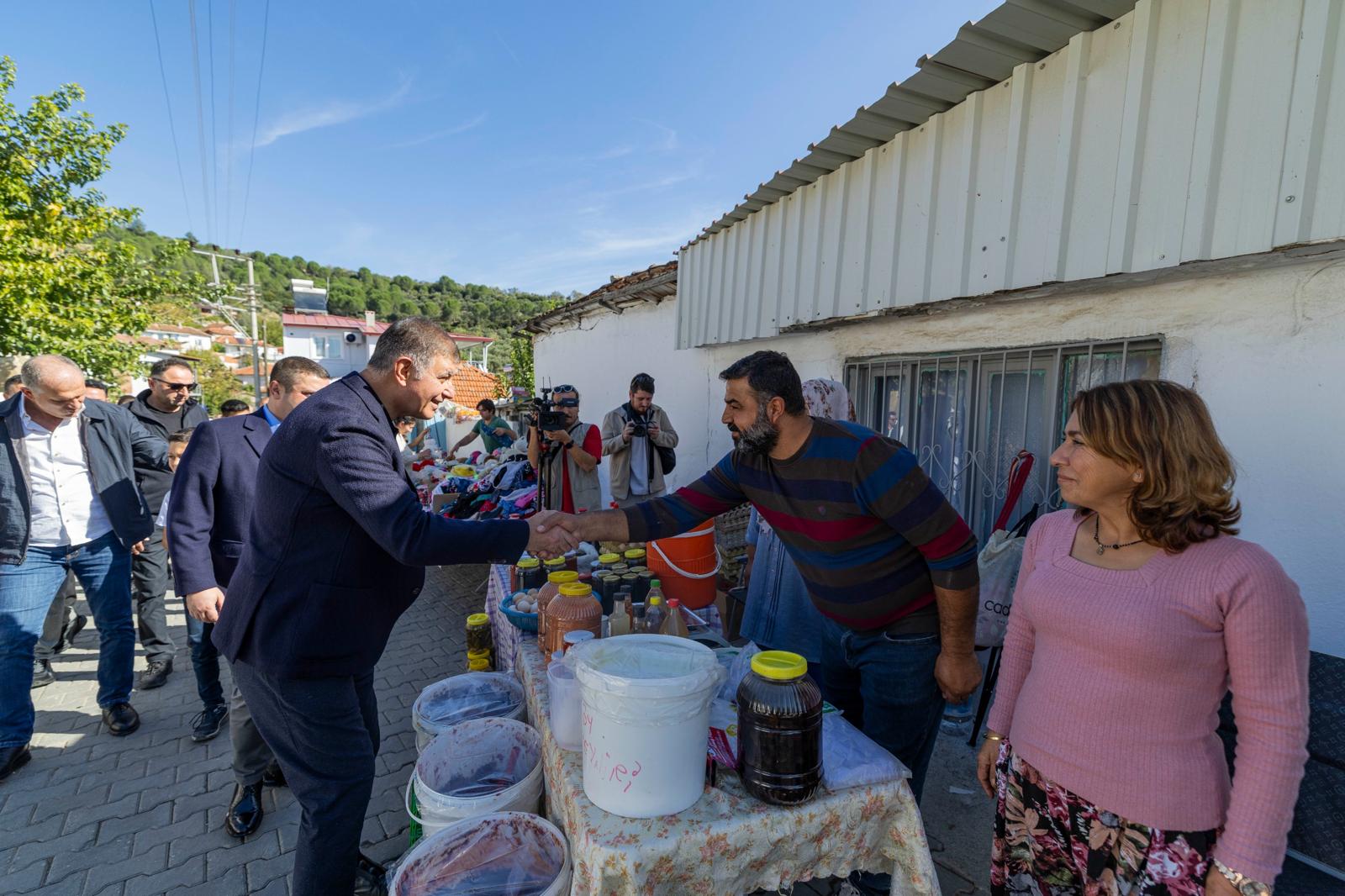 Köylerin ve köylerde yaşayanların ürettikleri ürünlerin çok kıymetli olduğunu vurgulayan Başkan Tugay, sözlerini şöyle sürdürdü: “Bunların hepsi yavaş yavaş bir taraftan terk ediliyor, bir taraftan tarım, gıda, hayvancılık kıymete biniyor. Biz İzmir Büyükşehir Belediyesi olarak köylerimize sahip çıkmaya karar verdik. Bu konuda çok daha fazla çalışmaya karar verdik. Zeytin, bölgemizin en değerli ürünü. Türkiye, zeytincilikten çok daha fazla para kazanabilir. Yeter ki ürettiğini markalaştırabilsin, satabilsin. Zeytinyağlarımızı Avrupa’da alıyorlar, süslü şişelerin içine koyuyorlar. Üzerine İtalyan markalarının adını yazıyorlar. Bu topraklarda ürettiğimiz zeytinyağını başkaları İtalyan zeytinyağı, İspanya zeytinyağı diye alıyor. Bunun farkına varmanız lazım. Bu bilinci edinmek zorundayız. İzmir bizim kıymetlimiz. İzmir’in her bir karış toprağı, her bir yaşayan insanı bizim için çok kıymetli. Türkiye’miz, bu güzel bayrak ve o güzel bayrak altında olmanın gururunu yaşıyoruz. Kurucumuz Gazi Mustafa Kemal Atatürk’ten onlardan güç alarak büyüdük. Onlara inanarak bugünlere geldik. Onlardan ve sizlerden aldığımız güçle inşallah hep beraber bu ülkeyi çok güzel günlere getireceğiz.”