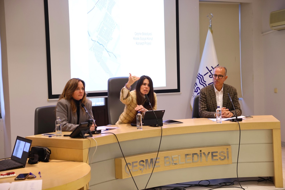 Çeşme Belediyesi Olağanüstü Meclis Toplantısı’nda, ilçenin yaklaşık 20 yıldır gündeminde olan sosyal konut konusuna yönelik Kiralık Sosyal Konut Projesi, oy birliğiyle kabul edildi. Çeşme Belediye Başkanı Lâl Denizli’nin meclis üyeleri ve canlı yayında izleyen vatandaşlara proje tasarımını bizzat sunduğu toplantıda alınan karar, Çeşme’de sosyal belediyecilik adına tarihi bir eşik olarak kayda geçti.