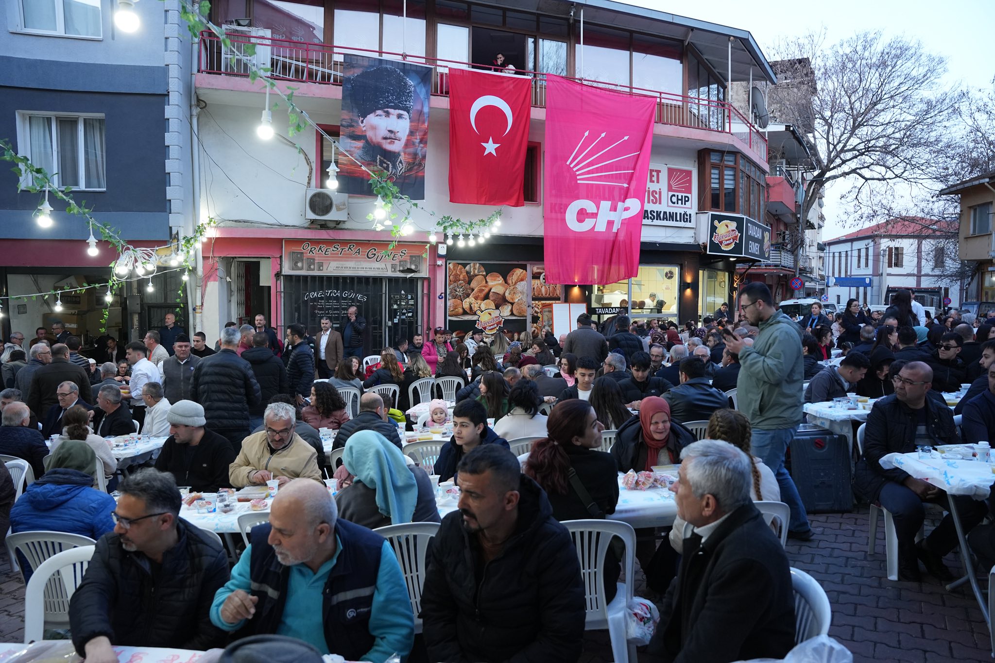 Cumhuriyet Halk Partisi Kemalpaşa İlçe Başkanlığı, Ramazan ayı dolayısıyla geleneksel iftar programını bu yıl da yoğun katılımla gerçekleştirdi. İlçe başkanlığı binası önünde kurulan iftar sofrasında binlerce Kemalpaşalı bir araya gelerek oruçlarını dualar eşliğinde açtı. Ramazan ayının manevi atmosferinin hissedildiği programda birlik, beraberlik ve dayanışma duyguları ön plana çıktı. Kemalpaşa’nın farklı mahallelerinden gelen vatandaşlar, akşam ezanının okunmasıyla birlikte kurulan uzun iftar sofralarında buluştu. İftar programında misafirleri CHP Kemalpaşa İlçe Başkanı Ahmet Yılmaz ve yönetim kurulu üyeleri karşıladı. Yoğun katılımla gerçekleşen iftar programına Kemalpaşa Belediye Başkanı Mehmet Türkmen, önceki dönem Cumhuriyet Halk Partisi İzmir Milletvekili Kamil Okyay Sındır, önceki dönem Bornova Belediye Başkanı Olgun Atilla, CHP Bornova İlçe Başkanı Ertürk Çapın, belediye meclis üyeleri, STK temsilcileri, muhtarlar, siyasi parti temsilcileri ve binlerce vatandaş katıldı.