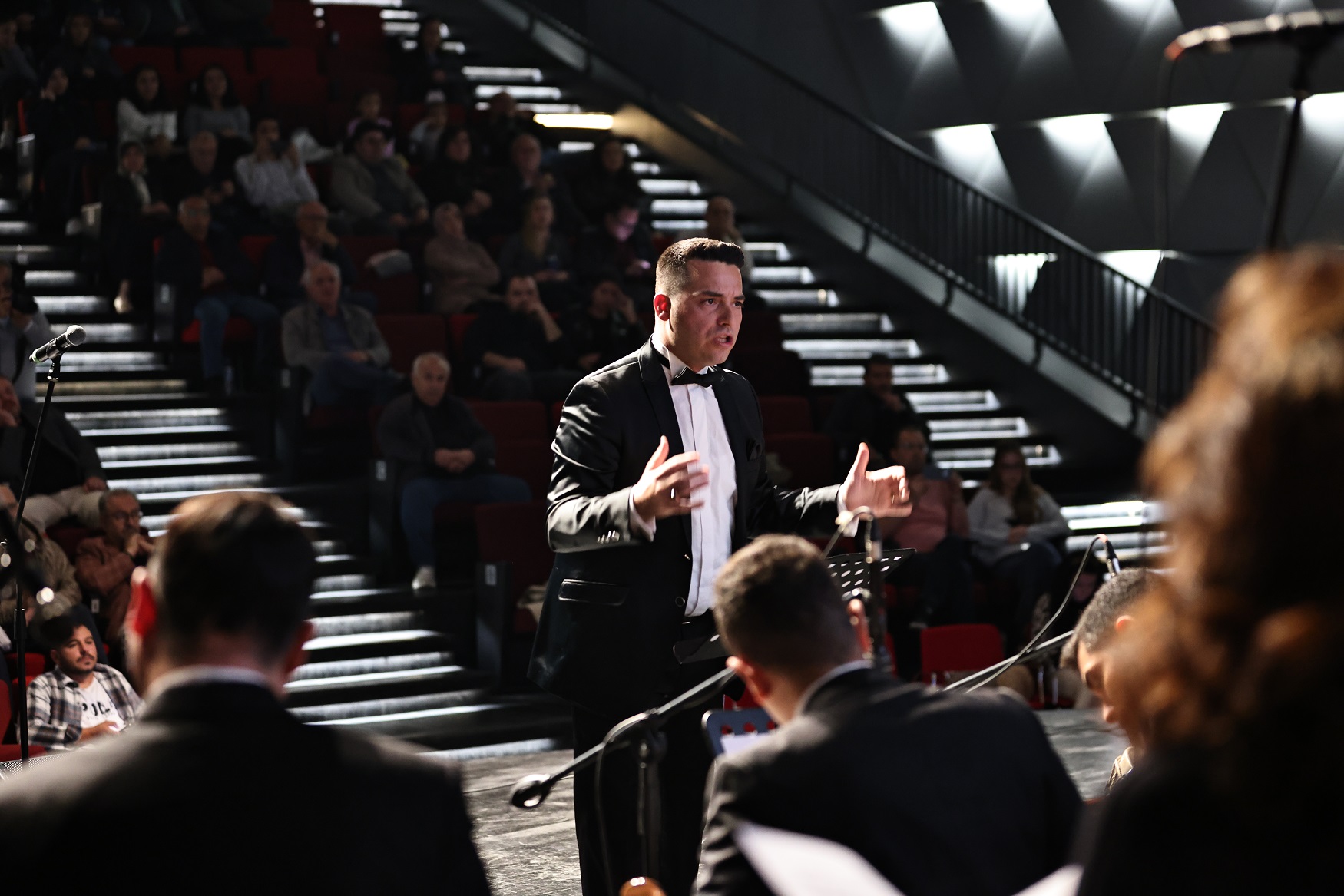 Denizli Büyükşehir Belediyesi Kongre ve Kültür Merkezi Fatma Yıldız Salonu’nda, klasik Türk müziğinin farklı formlarında bestelenen birbirinden güzel eserlerin seslendirildiği konser, 10. yüzyıldan günümüze uzanan etkileyici bir müzik şöleni oldu. Program, büyük filozof ve müzik bilgini Farâbi ile başlayıp, Abdülkadir Marâgi, Hafız Post, Buhûrîzâde Mustafa Itri Efendi ve Hammâmizâde İsmâil Dede Efendi gibi dönemin önemli bestekârlarının eserleriyle devam etti. Gece, geçmişten günümüze uzanan bu müzikal yolculuğun sonunda, güfte ve bestesi topluluğun şefi Ahmet Nuri Çağdaş’a ait olan “100. Yıl Cumhuriyet Marşı” ile son buldu. Dinleyicilerden büyük beğeni toplayan konser, Klasik Türk Müziği’nin derinliği ve zarafetini bir kez daha gözler önüne serdi.