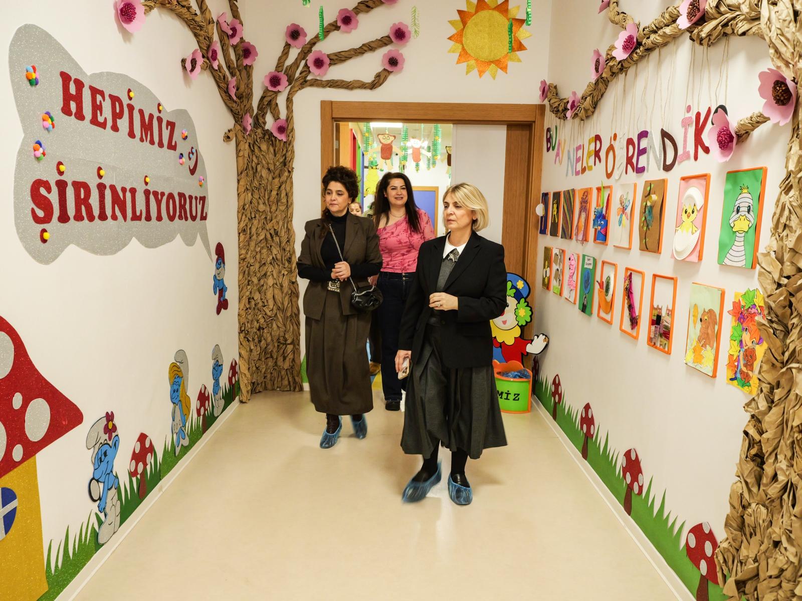 Etimesgut Belediye Başkan Yardımcısı Ebru Keyvan ile değerli sanatçı, yönetmen ve tiyatro oyuncusu Etimesgut Belediye Başkanı Erdal Beşikcioğlu’nun kıymetli eşi Elvin Beşikcioğlu, Etimesgut Belediyesi bünyesinde faaliyet gösteren Etisem Geleneksel El Sanatları Merkezi ile Bağlıca Devlet Bahçeli Tesisleri Etisem kursu ve kreşini ziyaret etti.