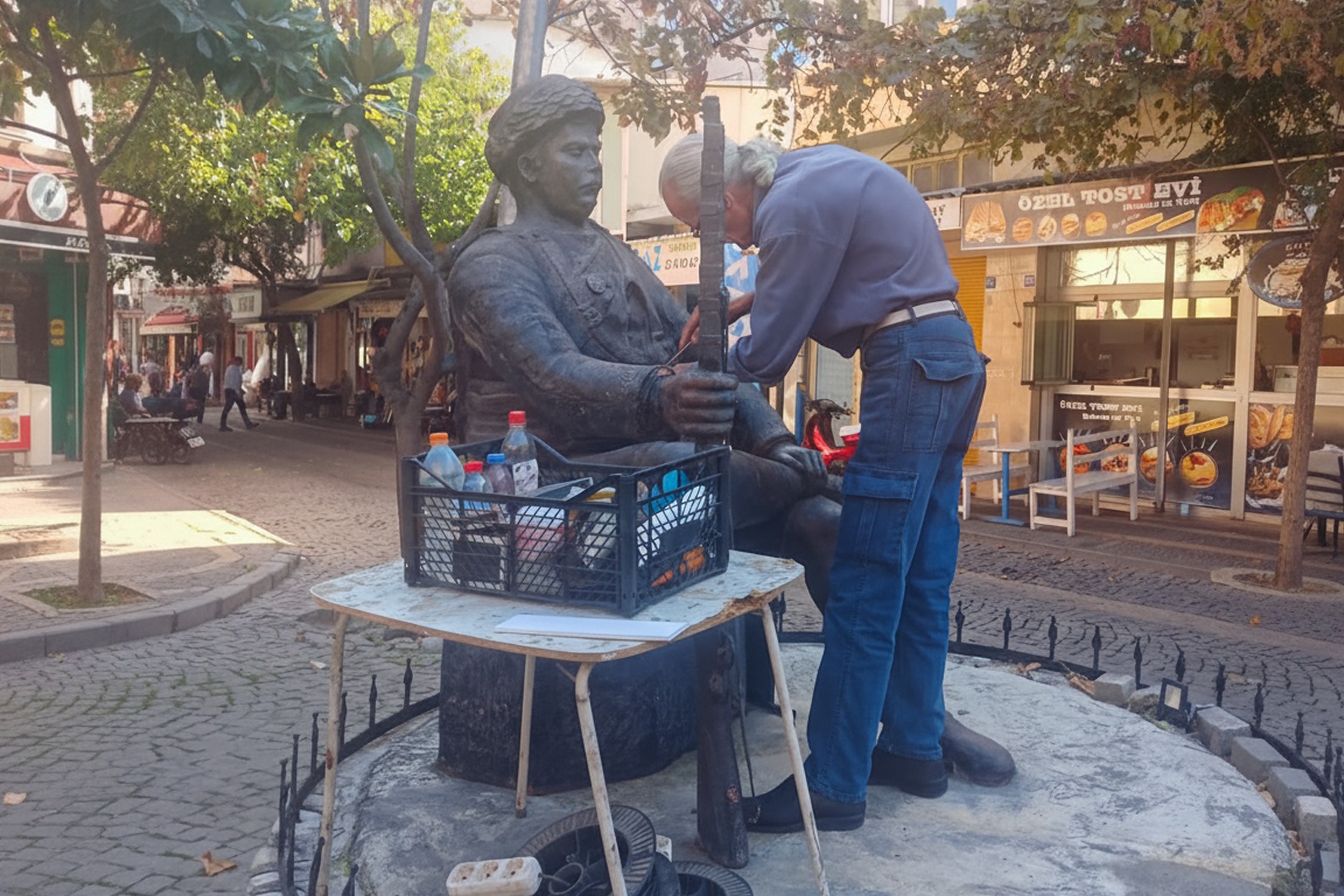 harekete geçti. Kimliği belirsiz kişi ya da kişilerce heykelindeki kaması sökülen Efe’nin anıtı,