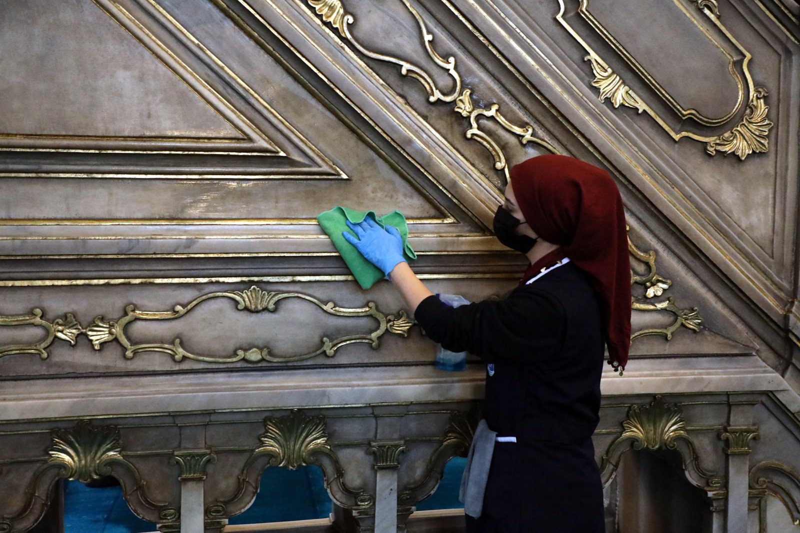 Cami içerisinde bulunan aydınlatma sistemi ve avizeler de ekipler tarafından temizlenerek bakımları yapıldı.