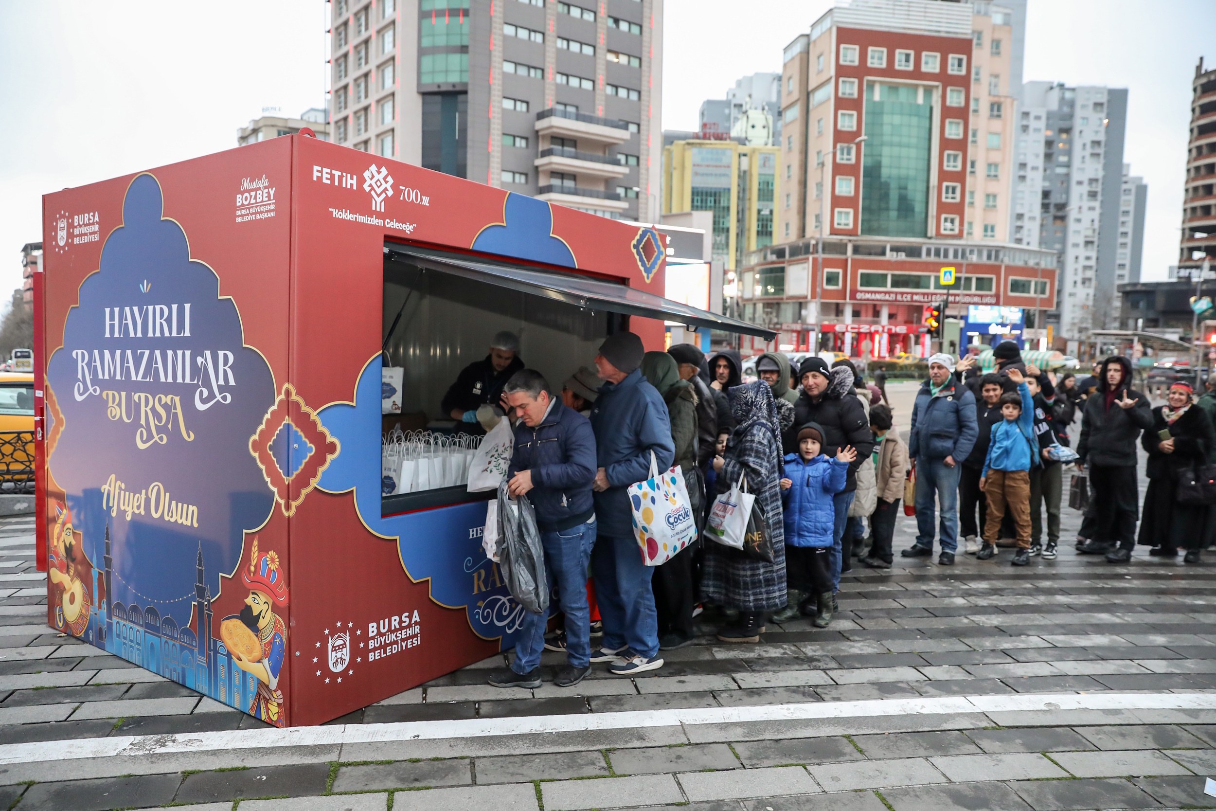 Bursa Büyükşehir Belediyesi, Emir Sultan, İnegöl İshakpaşa BURULAŞ Otoparkı, Fomara Fevzi Çakmak Katlı Otoparkı ve Değirmenönü Mahallesi’nde kurduğu sabit noktalarda da her gün binlerce vatandaşa iftar veriyor. İftara yetişemeyen vatandaşlar için ise yoğunluğun yaşandığı 14 ayrı noktada her gün iftariyelik dağıtılıyor. Kentin 1060 mahallesinde de Ramazan ayı boyunca en az bir kere vatandaşlara tatlı ikramında bulunuluyor.