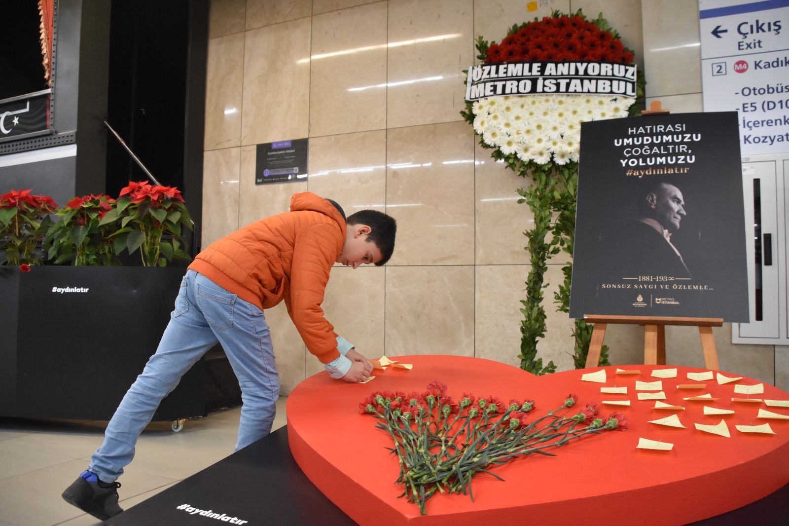 İstasyonda yer alan, sanatçı Murat Daşkın tarafından yapılan “Cumhuriyetin Gözleri” adlı üç boyutlu eserin çevresi özel bir anma alanına dönüştürüldü. Atatürk çiçekleriyle süslenen alanda, yolcuların Atatürk’e duygu ve düşüncelerini yazabildiği kalp biçiminde bir pano oluşturuldu. Törene katılan yolcular, panoya büyük ilgi gösterdi ve yüzlerce not bırakt