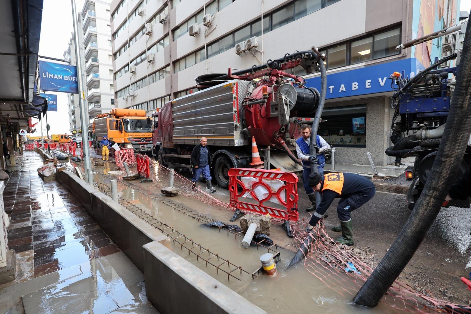 İZSU Genel Müdürlüğü ekipleri özellikle yol ve konutlardaki su baskınlarına müdahale ederken, itfaiye ekipleri su tahliye çalışmalarını sürdürdü. Özellikle suyun biriktiği noktalarda tahliye çalışmalarına ağırlık verildi. Dikili Cumhuriyet Mahallesi’nde 3 hidrosub pompa ile su çekildi. Karaburun Karareis Mahallesi’nde sitelerde yaşanan su baskınlarına müdahale edildi. Yağış nedeniyle Dikili Çandarlı Yolu, Bayındır Karapınar Mahallesi ve Urla Balıklıova yolunda heyelan meydana geldi. Yol Yapım, Bakım ve Onarım ekipleri, ulaşımın aksamaması için bu bölgelerde temizlik ve güvenlik çalışmalarını sürdürdü. Tire Küçükkemerdere Mahallesi ulaşım yolu güvenlik önlemleri alınarak açıldı. Karaburun Yayla mahallesinden Küçükbahçe ve Balıklıova’ya kadar kapalı olan yollar da açılıyor.
