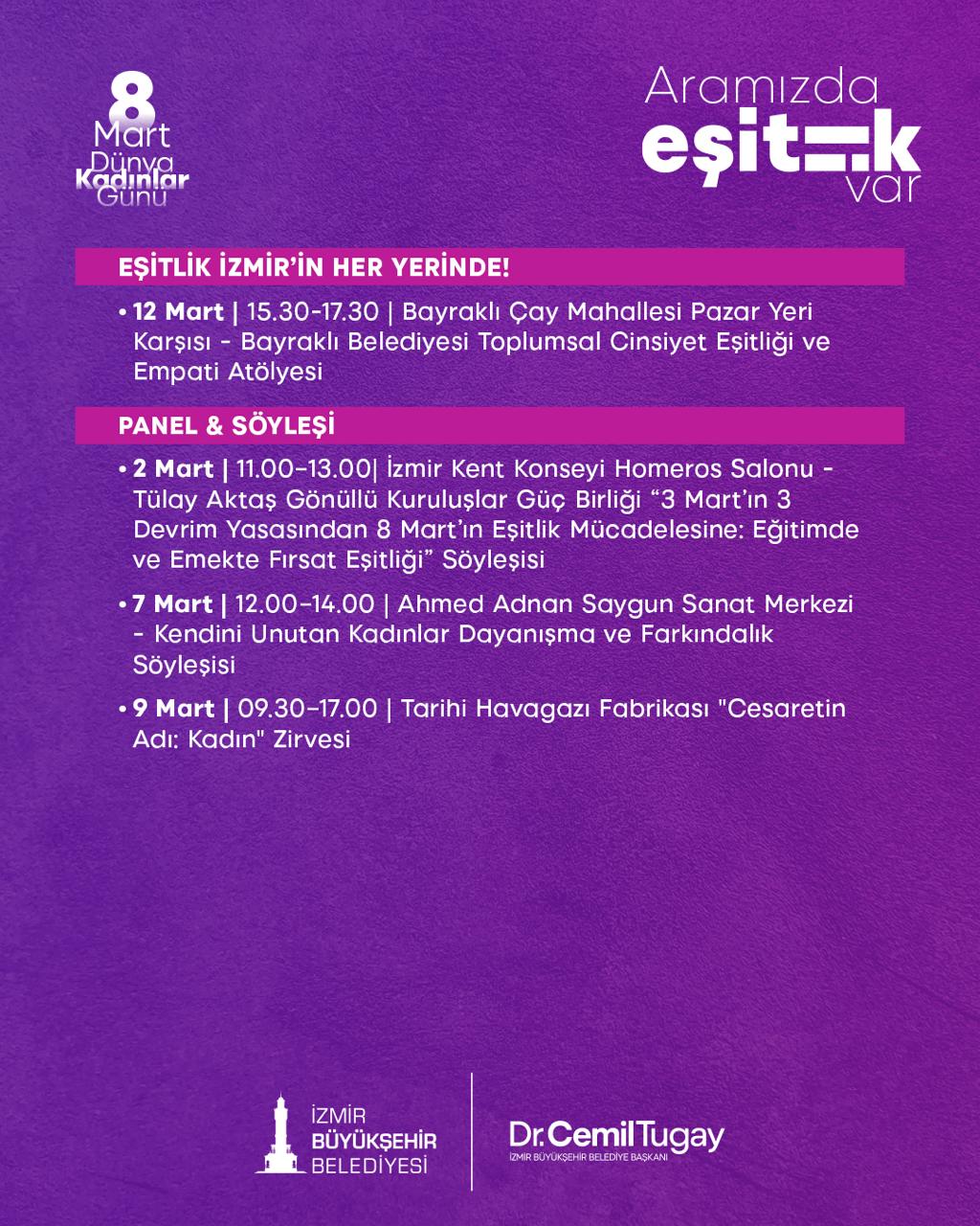 İzmir Büyükşehir Belediyesi, 8 Mart Dünya Kadınlar Günü’nü “Aramızda Eşitlik