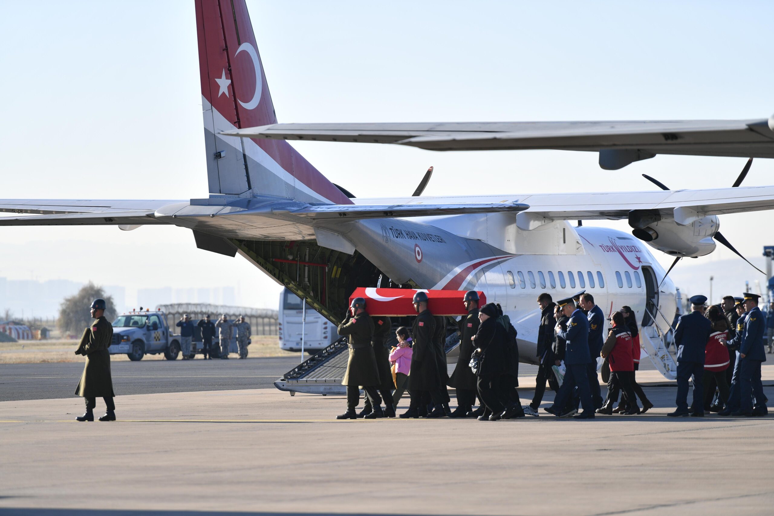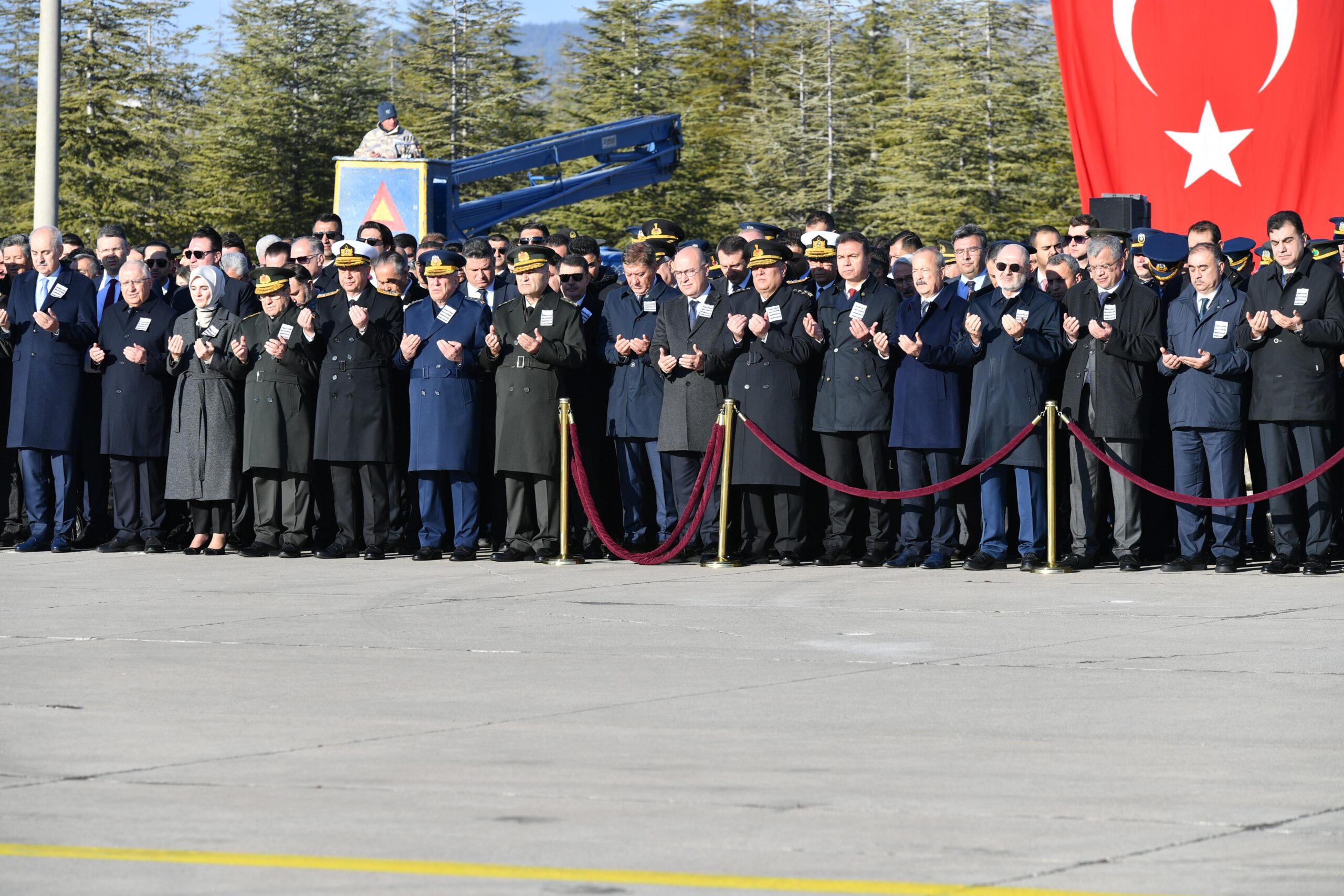 Azerbaycan-Gürcistan sınırında düşen askeri uçakta şehit olan 20 askerimiz için ilk resmi tören sabah saatlerinde Mürted Hava Meydan Komutanlığı’nda yapıldı. Törenin ardından 3 şehidin naaşı Ankara’ya, 17 şehit ise askerî uçaklarla memleketlerine uğurlandı.