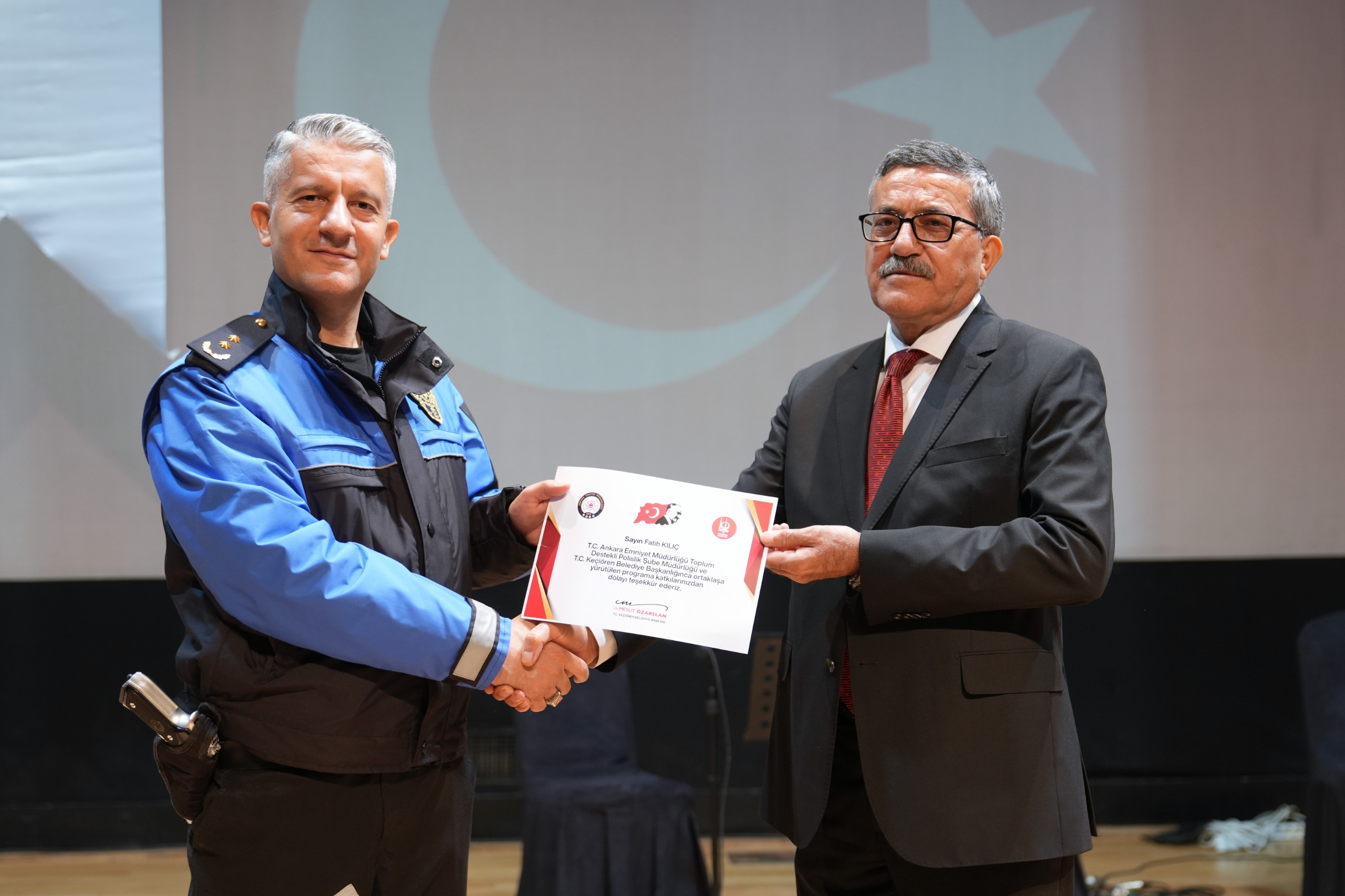 Saygı duruşu ve İstiklal Marşı’nın okunmasıyla başlayan programda, Toplum Destekli Polislik Şube Müdürlüğü ile Keçiören İlçe Halk Eğitim Merkezi iş birliğiyle yürütülen “Başkentin Yıldızları Projesi” kapsamında düzenlenen “Hasta ve Yaşlı Öz Bakımına Destek Olacakların Eğitimi” kursunu başarıyla tamamlayan 19 katılımcıya Keçiören Belediye Başkan Yardımcısı Celal Biçer ve Emniyet Müdürü Fatih Kılıç tarafından takdim edildi.