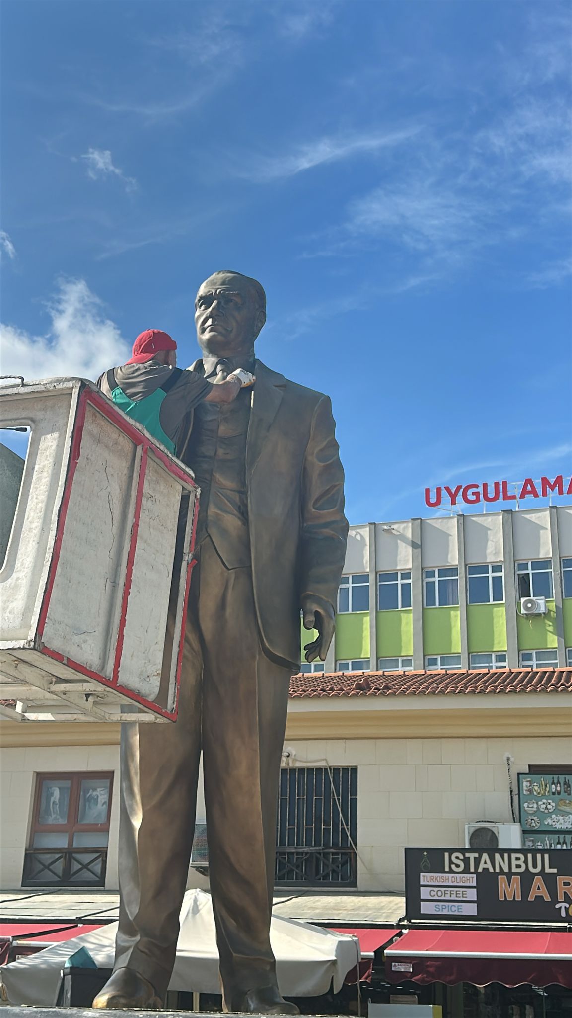 Kemer Cumhuriyet Meydanı’nda yer alan Atatürk heykeli, 10 Kasım öncesi anlamlı bir çalışmayla yenilendi. Çevresel etkenler nedeniyle zamanla yıpranan heykel, Kemer Belediyesi Kültür ve Sosyal İşler Müdürlüğü tarafından yürütülen çalışma kapsamında, usta ressam ve restoratör İsmet Bölükemini tarafından titizlikle restore edildi.