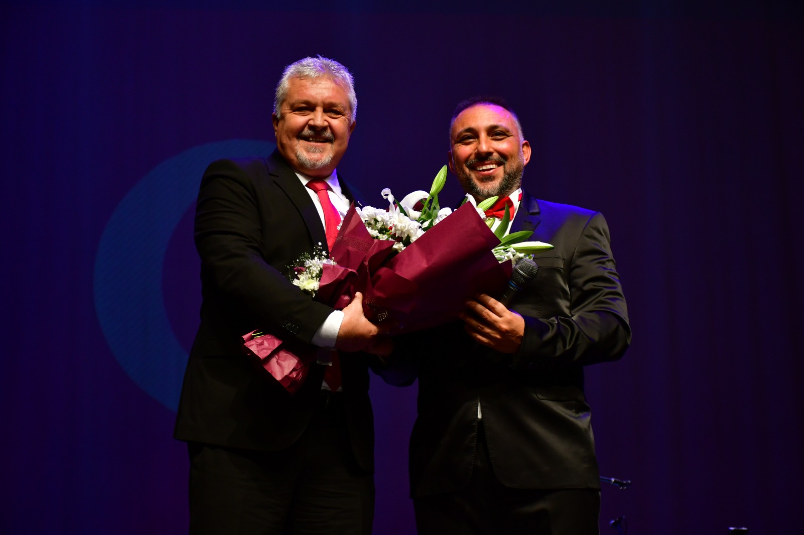 Belediye Başkanı Dr. Murat Gerenli, Dr. Evrim Kaşıkçı’ya günün anısına çiçek takdim etti.