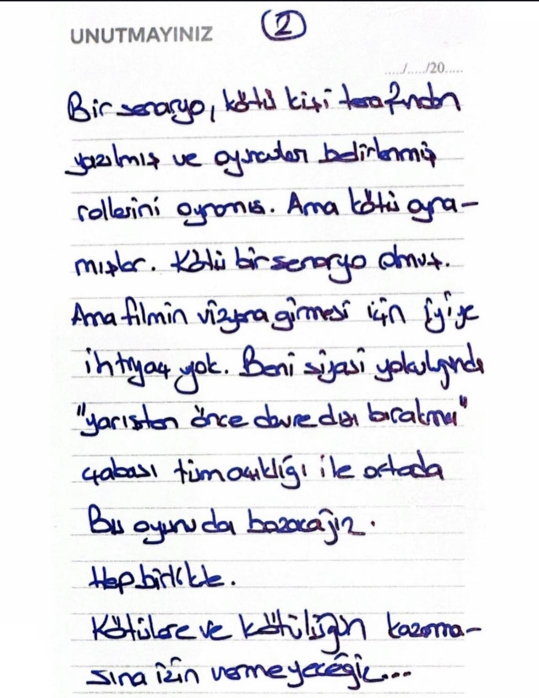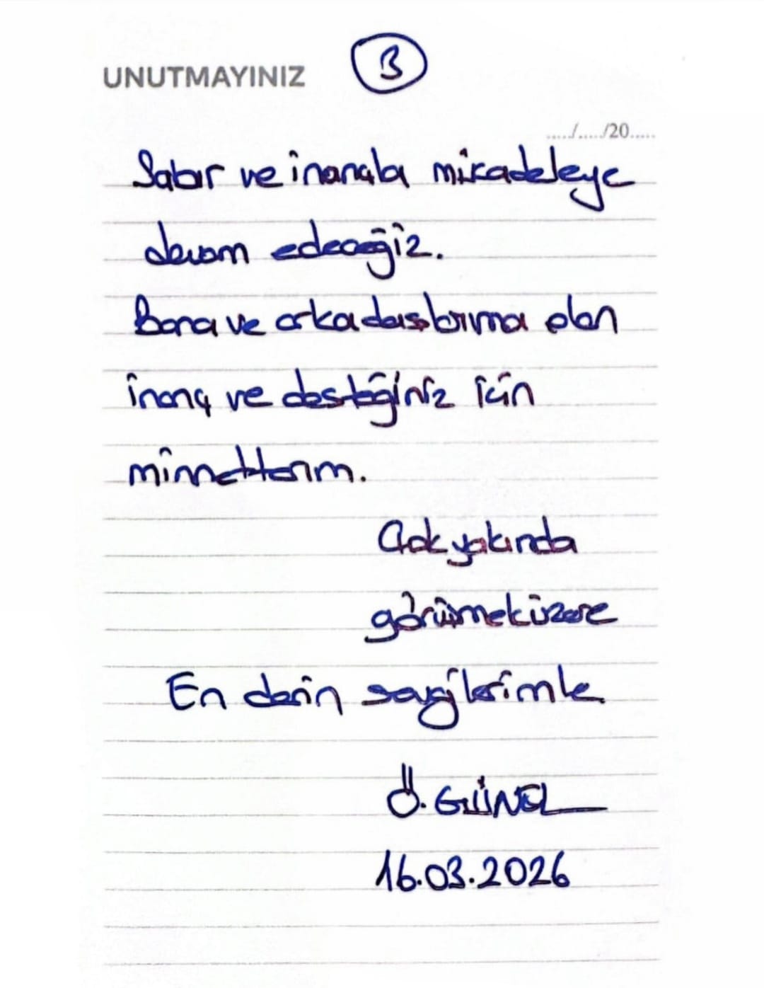 Hakkındaki iddiaların hiçbir delile dayanmadığını ifade eden Ömer Günel, şahsi meselesinden ziyade toplumsal bir endişe taşıdığını belirterek el yazısı mesajında şunları söyledi: