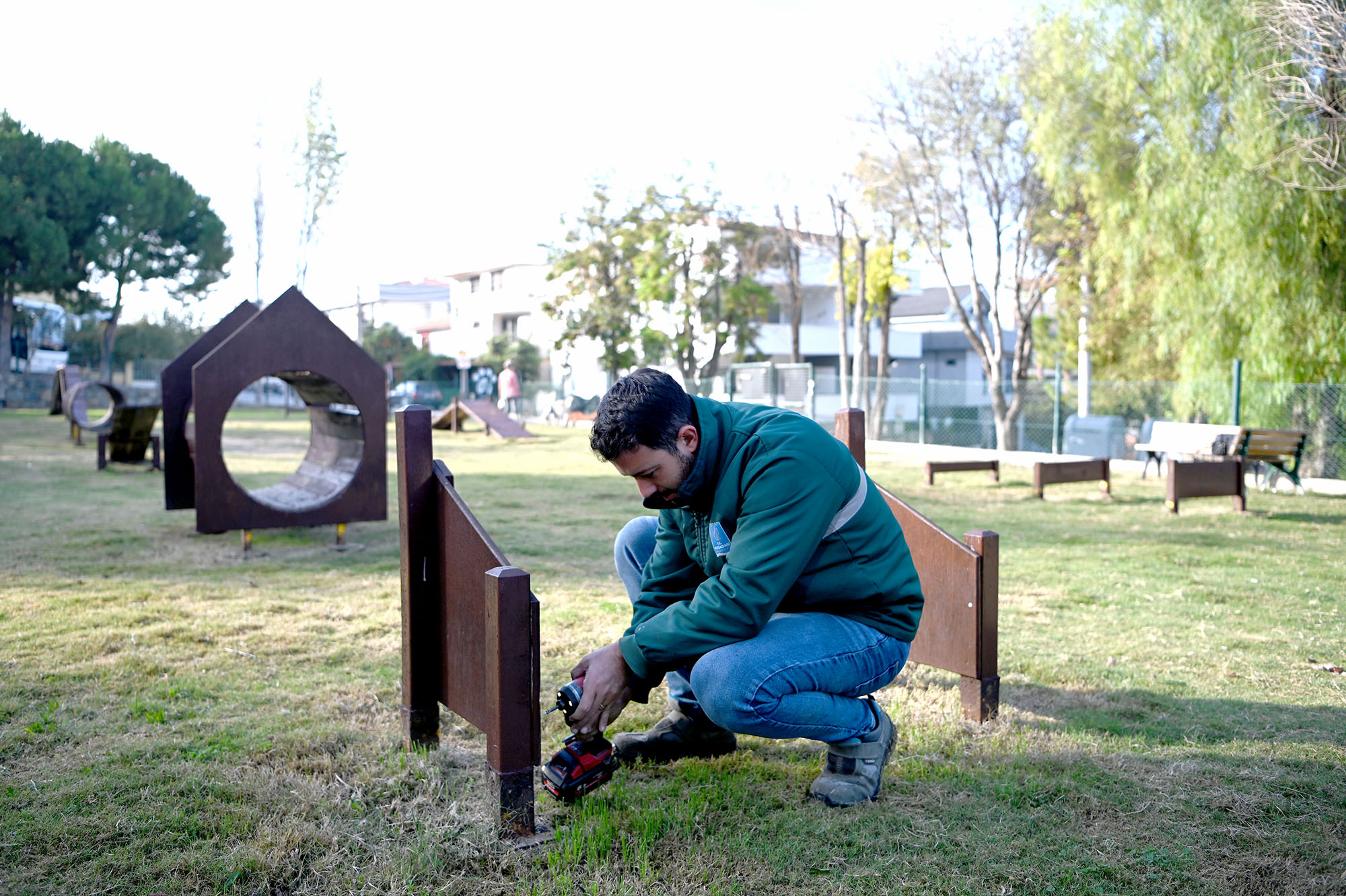 Kuşadası Belediyesi tarafından köpeklerin sahipleriyle beraber keyifli zaman geçirebilmeleri için açılan ‘Pako Köpek Eğitim Parkı’nda’ bakım ve onarım çalışması yapıldı. Bu kapsamda Park ve Bahçeler Müdürlüğü ekipleri, parktaki eskiyen eğitim ünitelerinin bağlantılarını yenileyerek yıpranan ahşap parçaları değiştirdi.