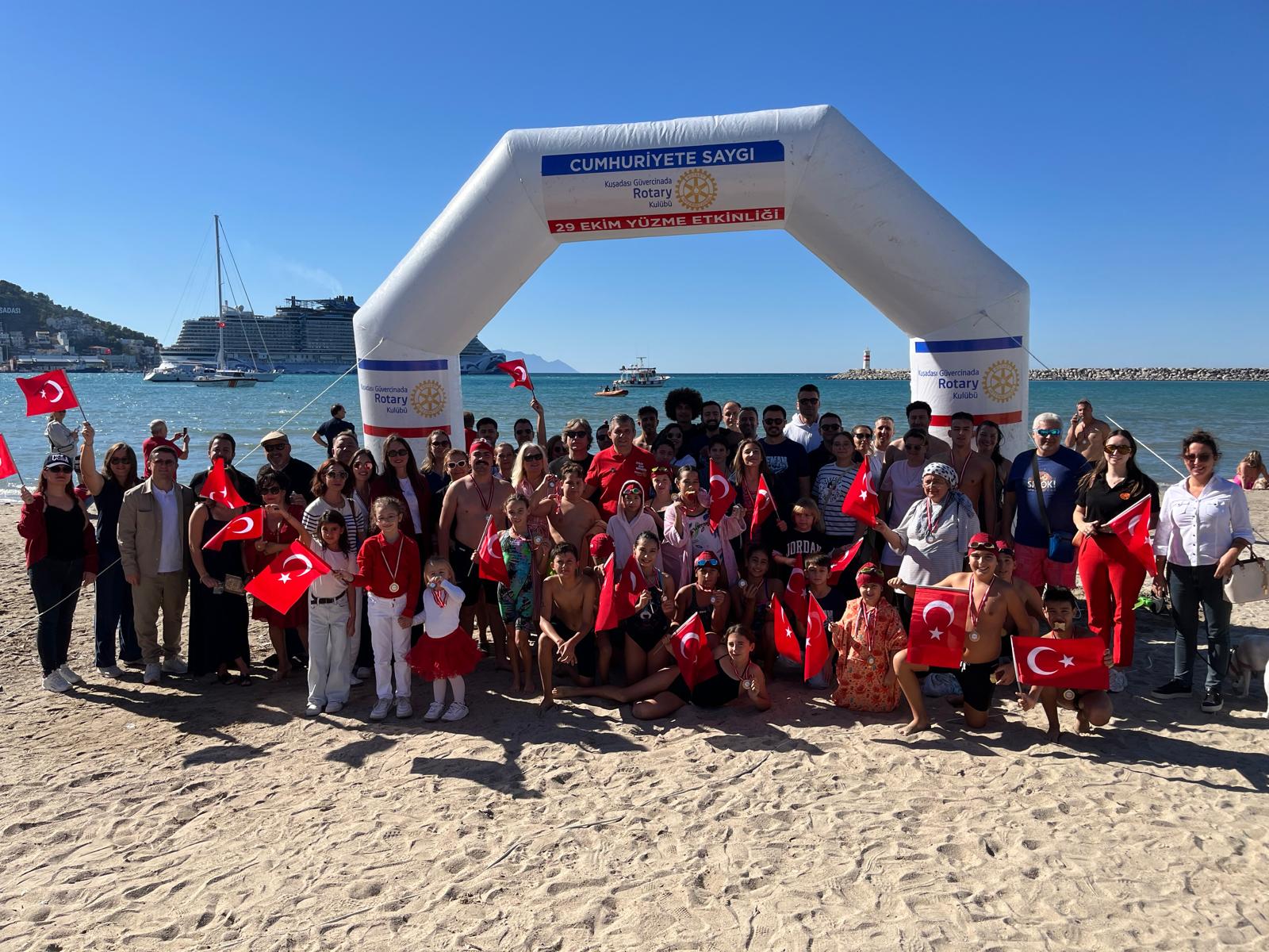 Kuşadası Güvercinada Rotary Kulübü, 29 Ekim Cumhuriyet Bayramı dolayısıyla Cumhuriyetin 102. yılı anısına “Cumhuriyete Saygı Yüzme Etkinliği” düzenledi. Etkinlik, Marina Plajı’nda 50’den fazla yüzücünün katılımıyla gerçekleştirildi.