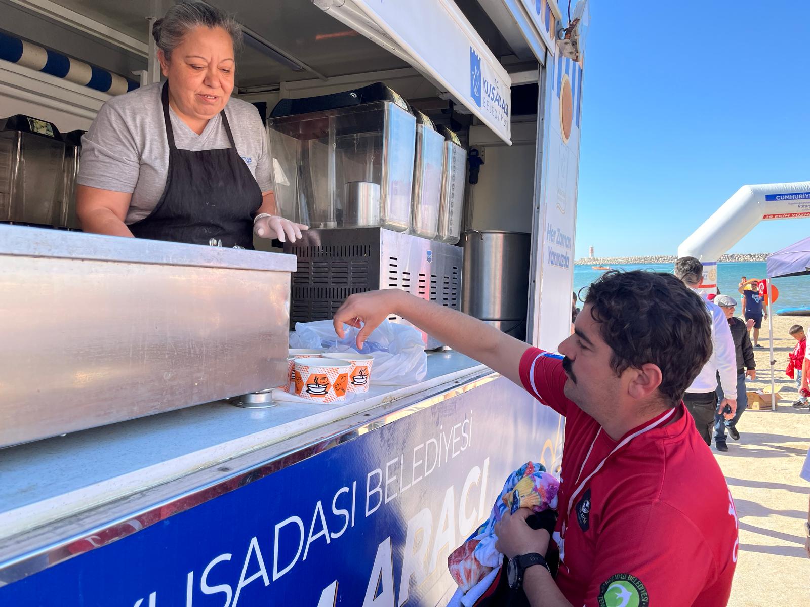 Etkinlik sonunda Kuşadası Belediyesi’nin ikram araçlarından sıcak çorba ve su dağıtılarak yüzücülere ikramda bulunuldu. Cumhuriyet coşkusunun denizde kutlandığı etkinlik, hem spor hem de milli birlik duygusunu bir araya getirdi.