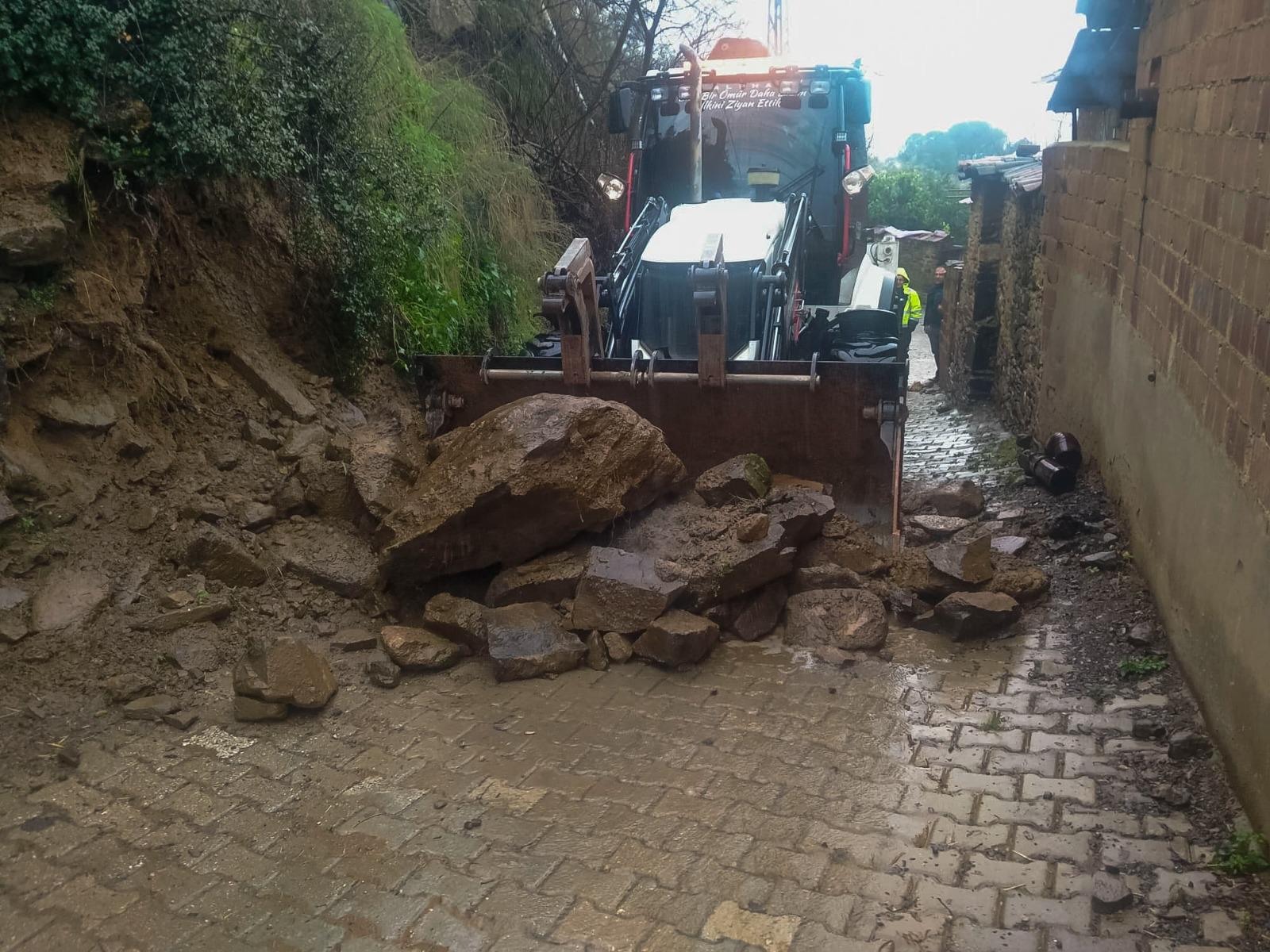 •Bıçakçı Mahallesi’nde toprak kaymaları temizlenerek yol güvenli hale getirildi.