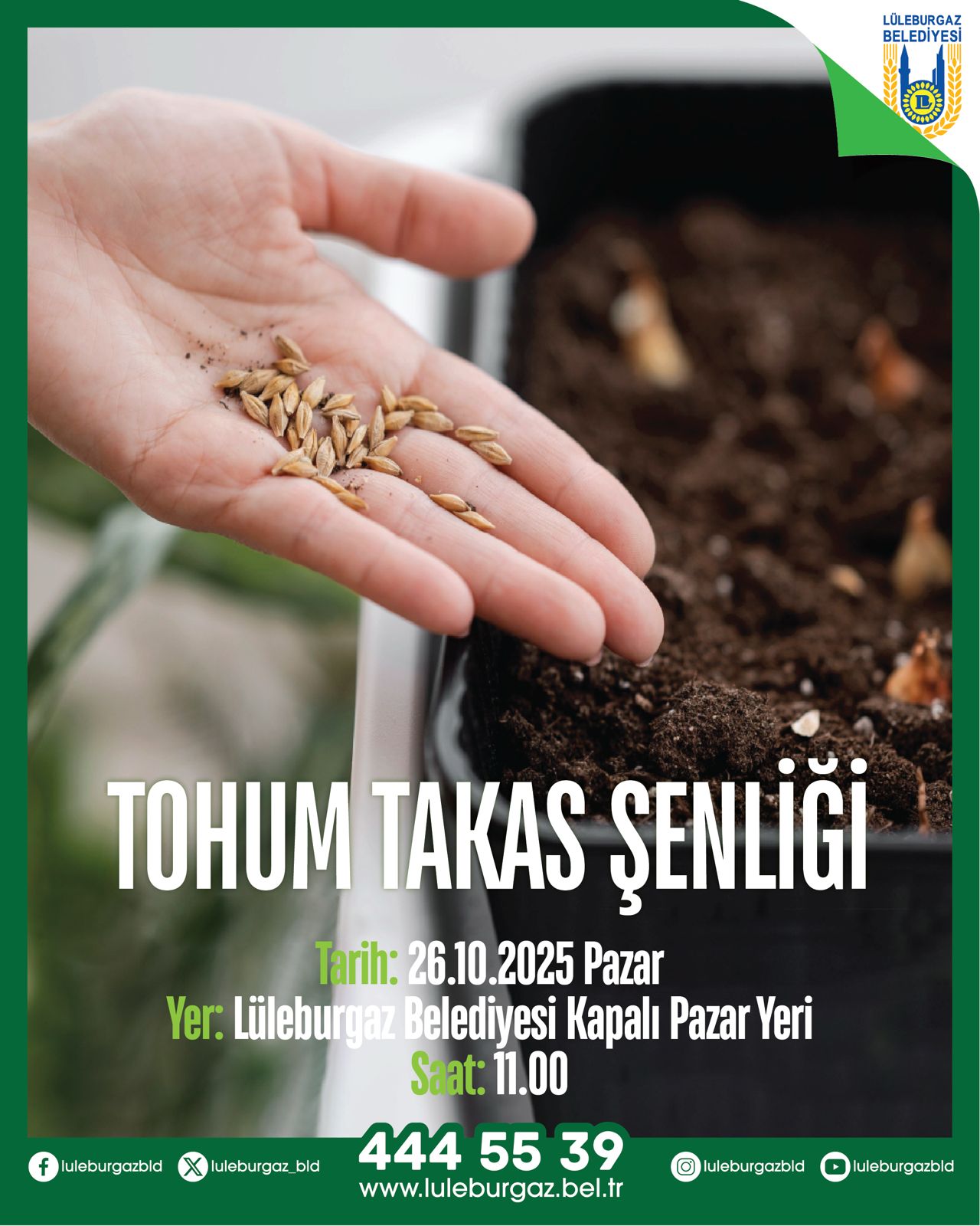 Lüleburgaz Belediyesi, yerel ve ata tohumlarını yaşatmak, gelecek nesillere aktarmak adına bu yıl Tohum Takas Şenliği düzenliyor. Tohum Takas Şenliği, 26 Ekim Pazar günü Kapalı Pazar Yeri’nde düzenlenecek.
