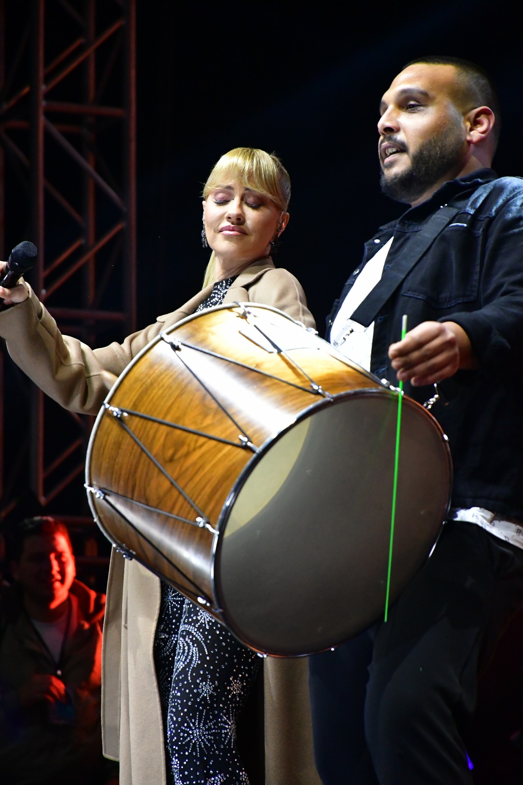 Dinleyicilerin arasından sahneye davet ettiği hayranının 9/8’lik asma davul performansını oldukça beğenen sanatçı, daha sonra hayranına eşlik etti.
