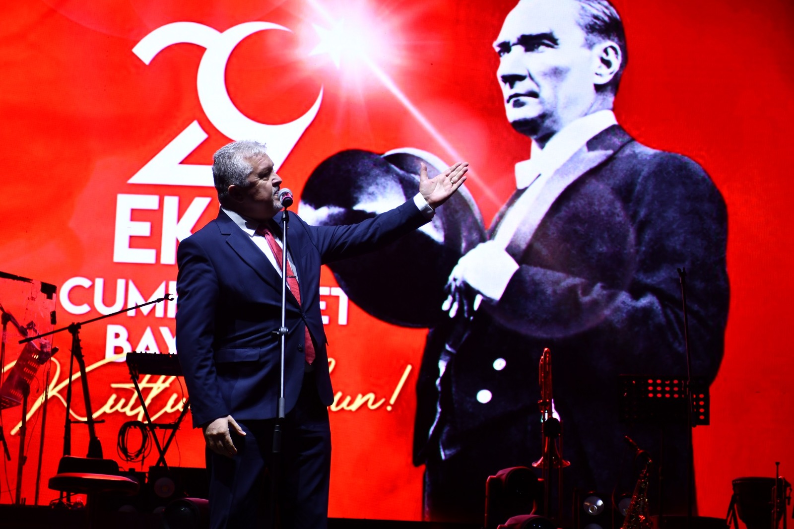 Gecede konuşan Lüleburgaz Belediye Başkanı Dr. Murat Gerenli; “Eşitliktir Cumhuriyet, fırsat eşitliğidir, kadın erkek eşitliğidir Cumhuriyet. Kimsesizlerin kimsesidir Cumhuriyet. Yaşasın Cumhuriyet, ilelebet Cumhuriyet. 29 Ekim Cumhuriyet Bayramımız kutlu olsun. Ne mutlu Türk’üm diyene” dedi. Gerenli daha sonra Derya Uluğ’a çiçek takdim etti. Sanatçının seslendirdiği 10. Yıl Marşı, Parla ve İzmir Marşı’na alanda bulunan herkes Türk bayraklarıyla eşlik etti.