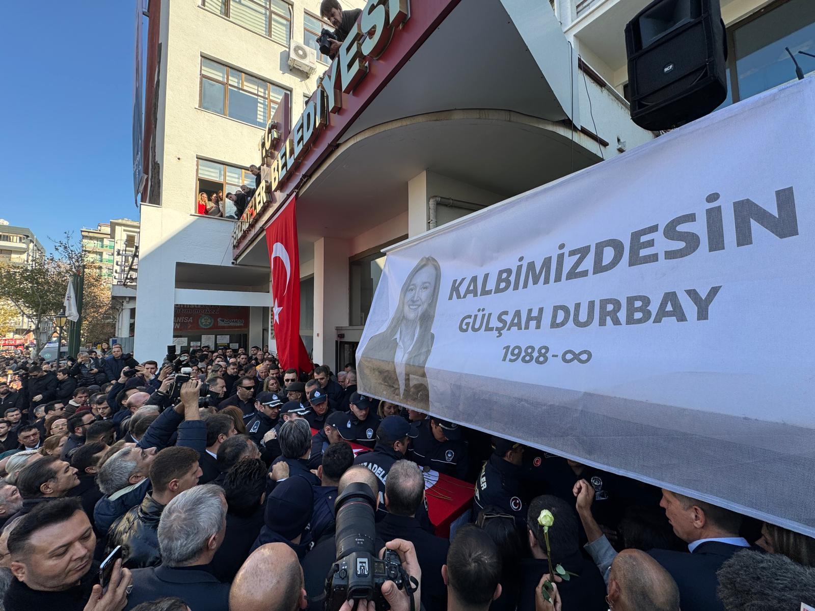 Cumhuriyet Halk Partisi Gençlik Kolları’nda uzun süre görev alan, Manisa’nın ilk kadın belediye başkanı Şehzadeler Belediye Başkanı Gülşah Durbay son yolculuğuna uğurlanıyor. Şehzadeler Belediyesi’nin önünde gerçekleşen törende Durbay’ın naaşını kırmızı yelekli CHP Gençlik Kolları üyeleri karşıladı. Durbay’ın naaşı binlerce Manisalının alkışları eşliğinde belediye binası önünde hazırlanan alana yerleştirildi. Törene Durbay’ın babası Osman Durbay ile annesi Fatma Durbay, kardeşi Nevsale Durbay Karataş, CHP Genel Başkanı Özgür Özel, İzmir Büyükşehir Belediye Başkanı Dr. Cemil Tugay ile eşi Öznur Tugay, Ankara Büyükşehir Belediye Başkanı Mansur Yavaş, İstanbul Büyükşehir Belediyesi Başkan Vekili Nuri Aslan, İstanbul Büyükşehir Belediye Başkanı Ekrem İmamoğlu’nun eşi Dilek İmamoğlu, Manisa Valisi Vahdettin Özkan, CHP yönetimi, belediye başkanları, milletvekilleri, siyasi parti temsilcileri ve binlerce Manisalı katıldı.