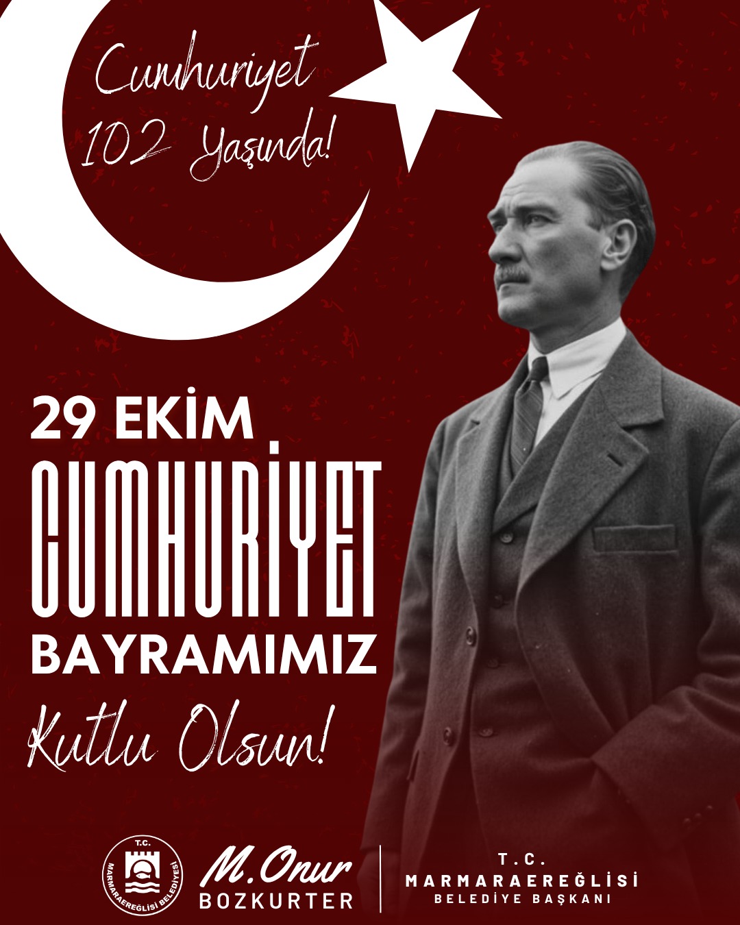 Marmaraereğlisi Belediye Başkanı Mustafa Onur Bozkurter, 29 Ekim kutlamalarına ilişkin yaptığı açıklamada şunları söyledi:
